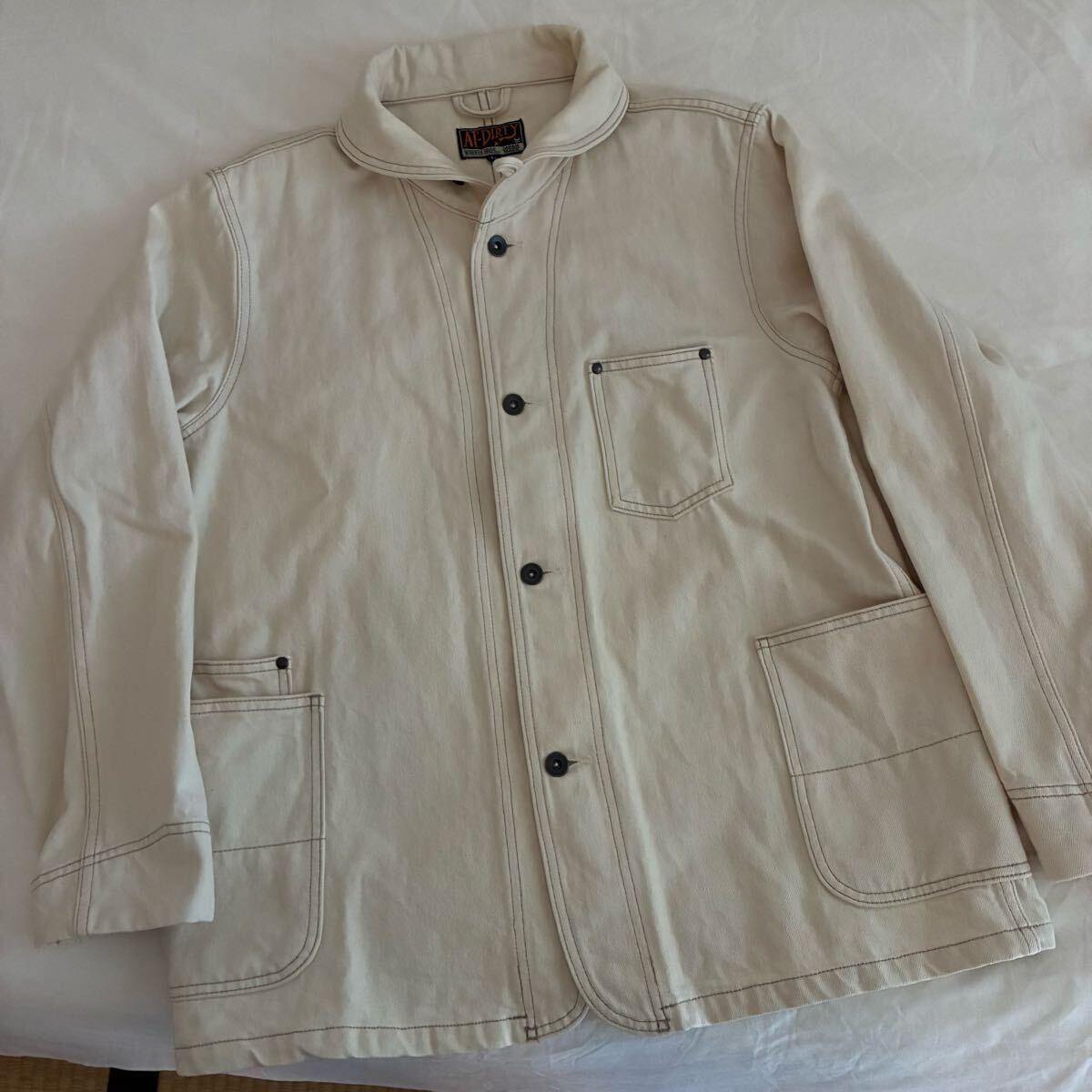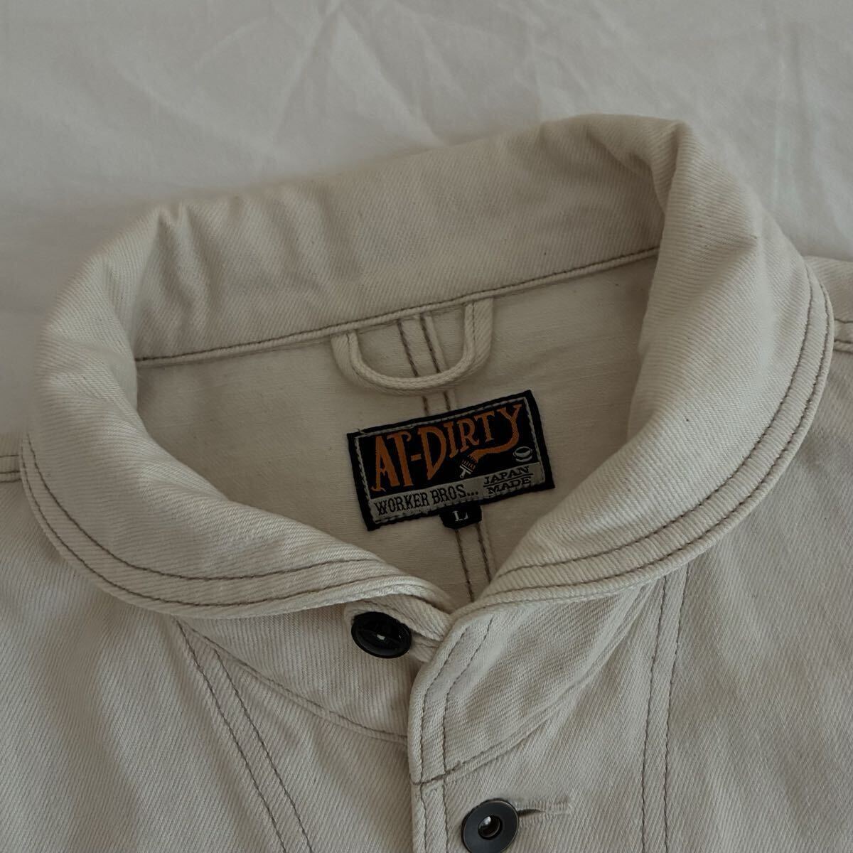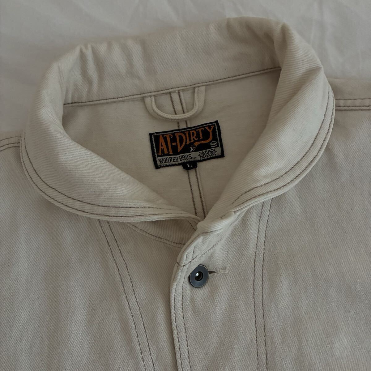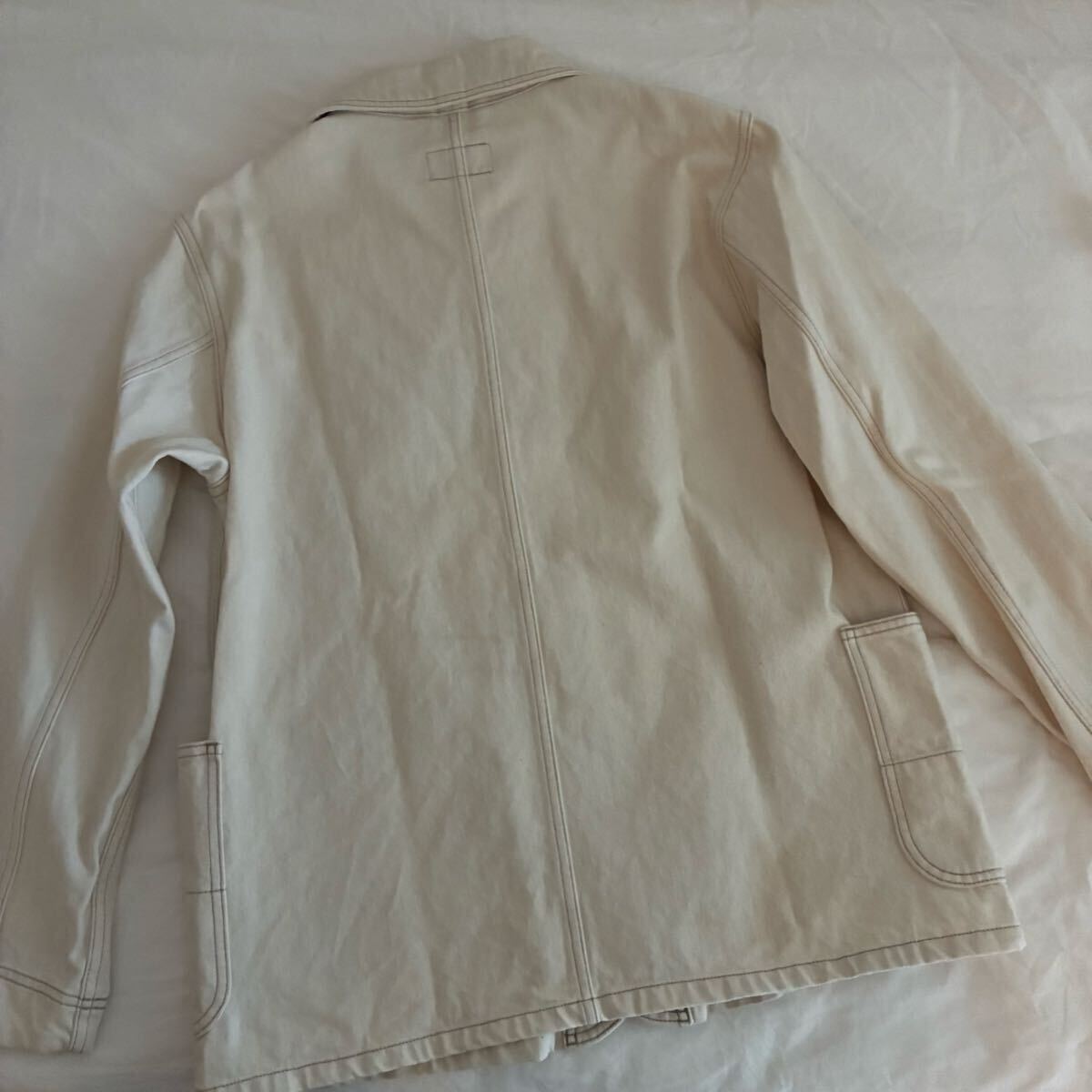 サイズ:L、カラー:オフホワイト、素材:ホワイトデニム(コットン100%)。使用感もなく状態もキレイです。着払いのゆうパックにてお送りいたします。