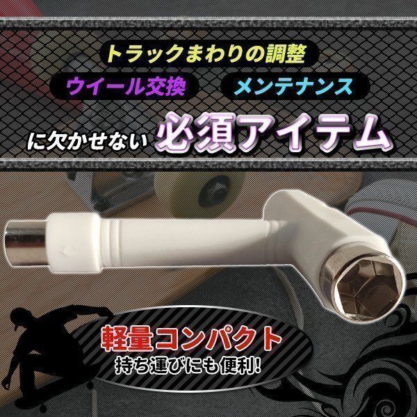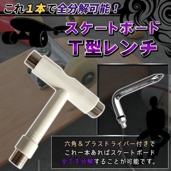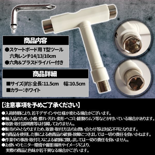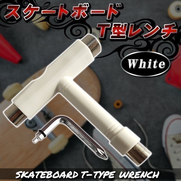 ★スケートボード Tツール スケボー Tレンチ 調整 工具 スケボーツール デッキ ビス 組み立て コンプリート トラック ウィール T-tool 白