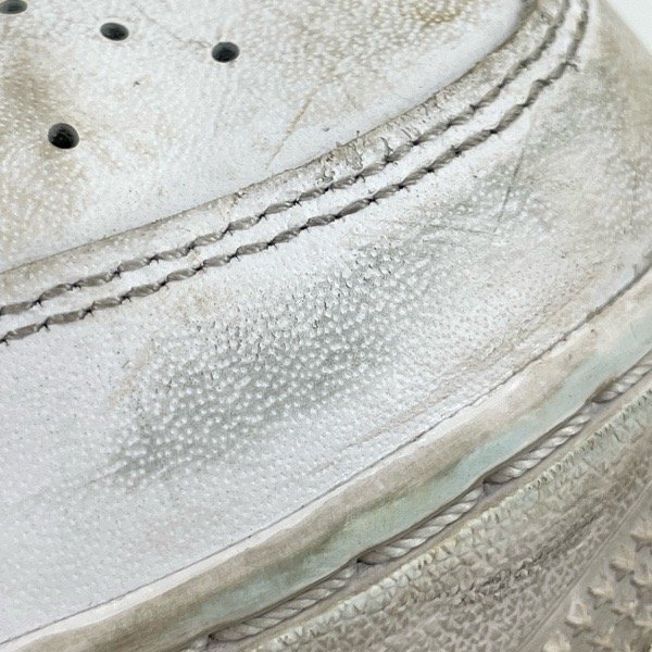 ※使用に伴い、シワ、スレ、汚れ、色移り、黒ずみ、ソールにすり減り、インソールロゴの剥がれ、タグに印字薄れ等が見受けられます。 ※ソール接着部分に剥がれがございます。 経年劣化により、着用された際や輸送中に破損、ソールが剥がれる場合がございます。万が一、落札後に破損等がありましても返品等の対応は一切致しかねます。 ご理解頂いた上でご入札いただきますようお願いいたします。 ※柔軟剤などによる、においがございます。においを気にされます方は入札をご遠慮ください。 | |||||||||||||||||||||||||