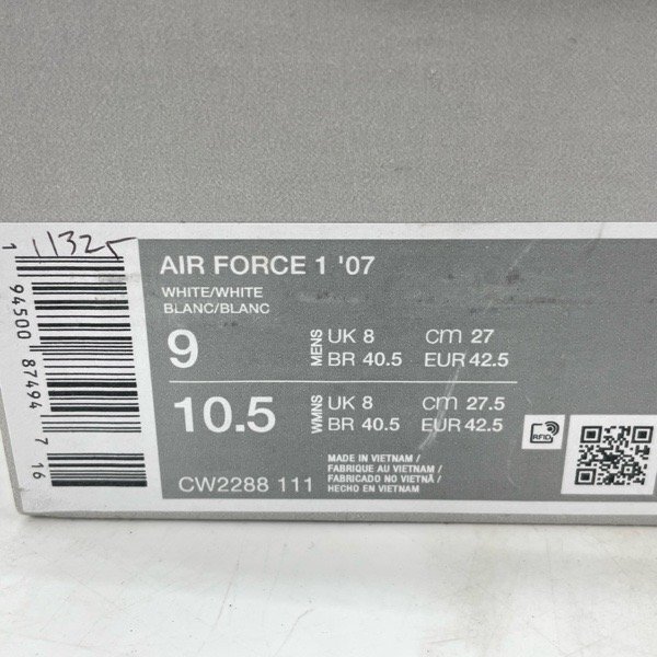 NIKE/ナイキ AIR FORCE 1 LOW/エアフォース1 ロー ホワイト CW2288-111/27.0 /080 | |||||||||||||||||||||||||