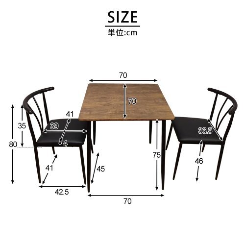 商品詳細 【70cm×70cmのテーブルがちょうどいい】お部屋に置いても圧迫感を感じにくいこのサイズ。一人暮らしやカップルにぴったりです。 【角度設計されたシンプルで美しいチェア】シンプルでかつ座りやすさを考慮したデザインにしました。背もたれは角度をつけ、背中にあ