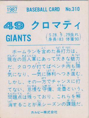 ★トレカ★1987年カルビー【#310 クロマティ】★