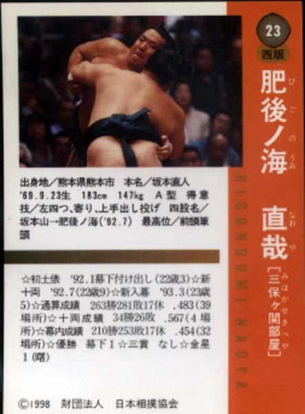 ★トレカ★BBM98大相撲西版【#023 肥後ノ海直哉】★