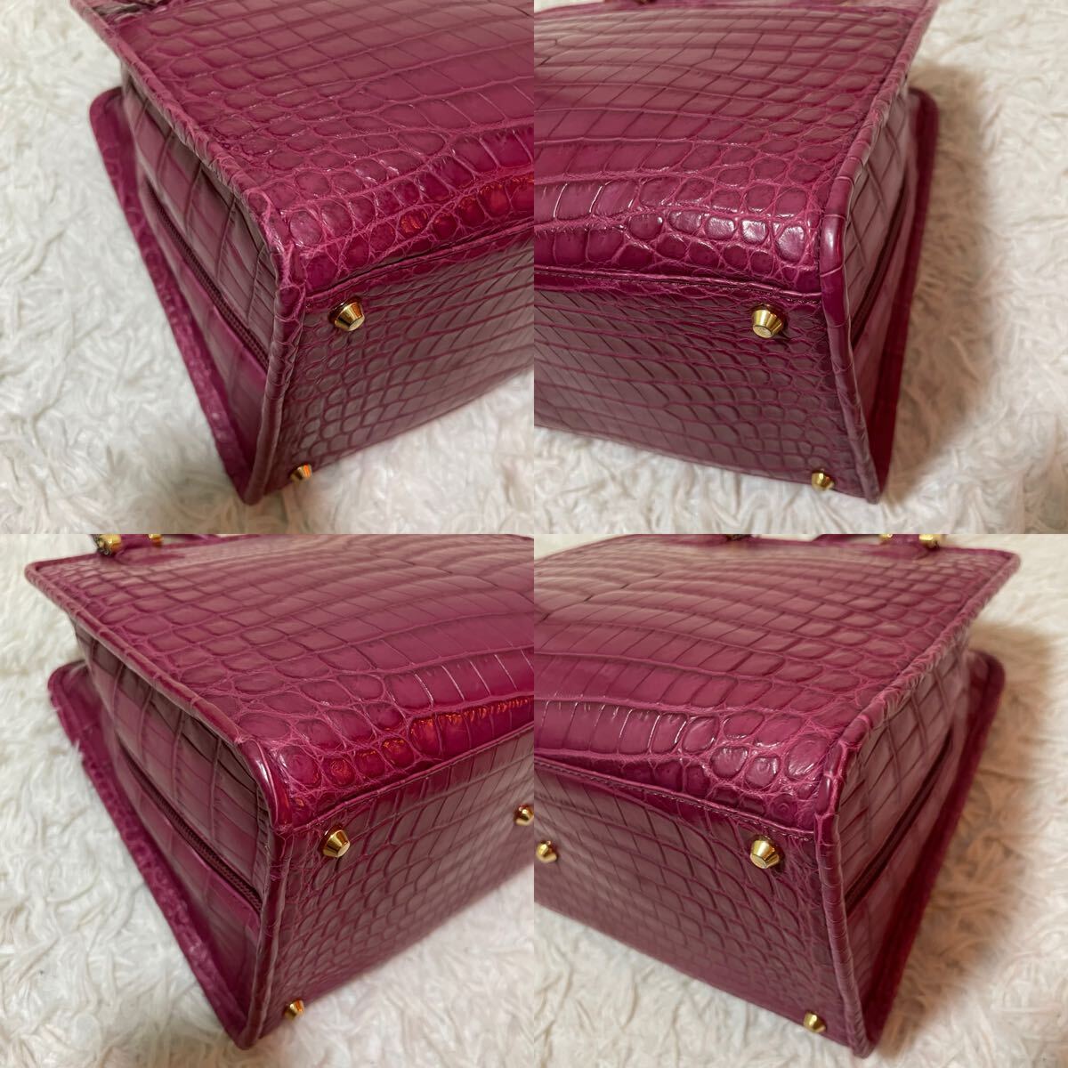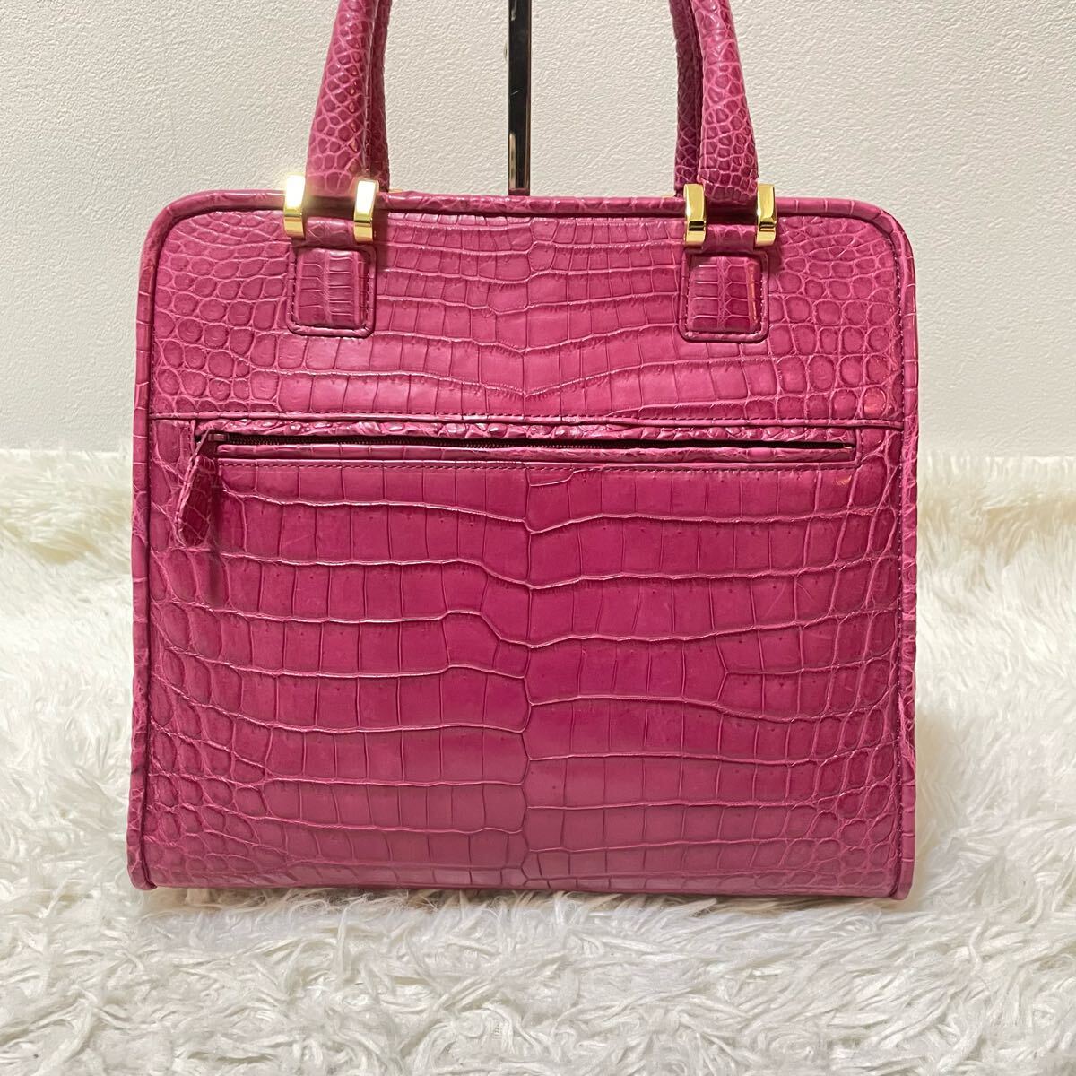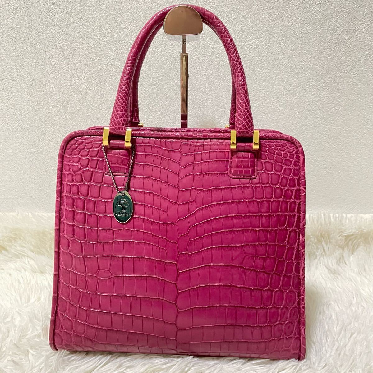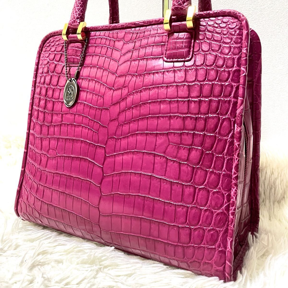 未使用品 La Luce【正規JRA認証】リアルクロコダイル ハンドバッグ マゼンタピンク 希少色 センター取り Crocodile エキゾチックレザー 革