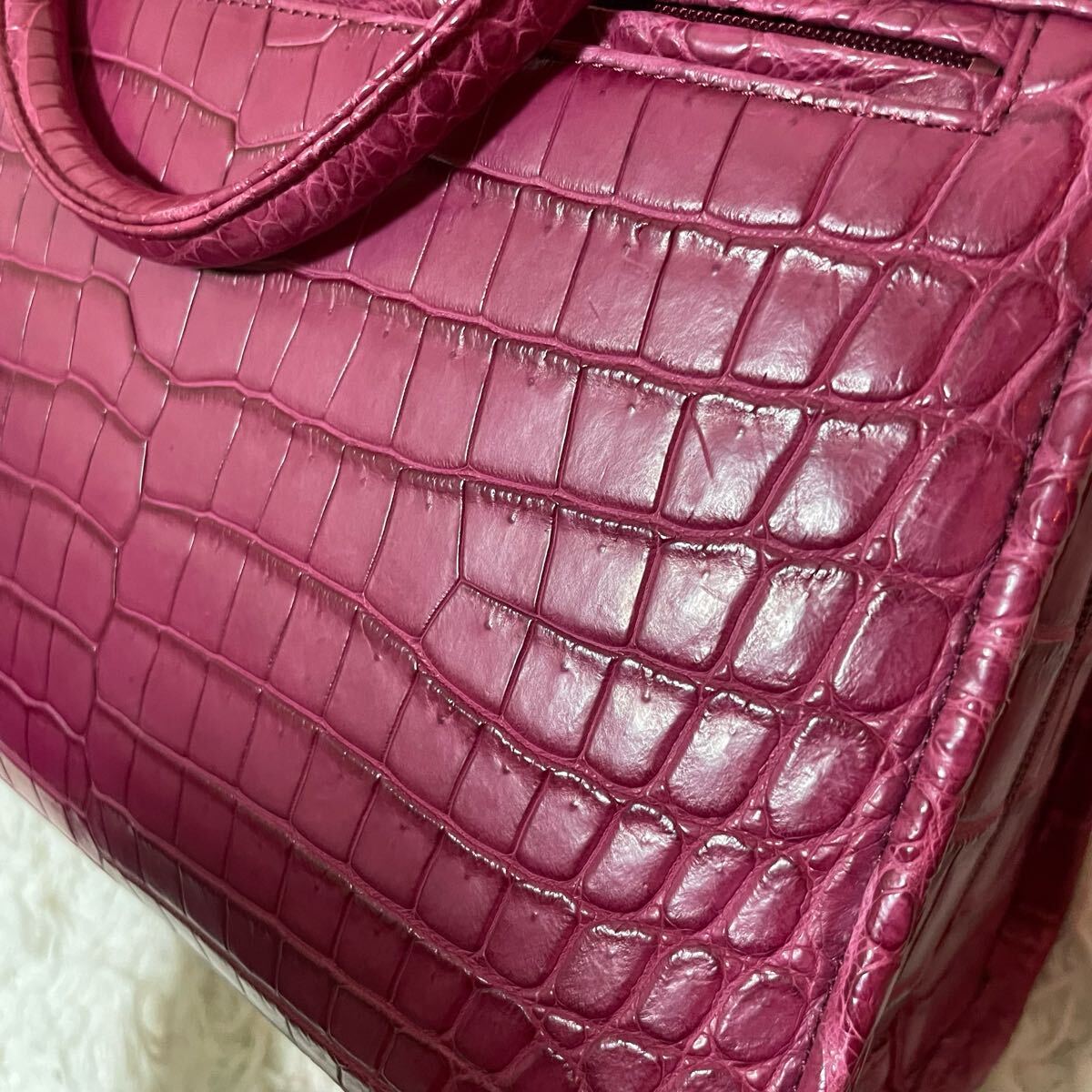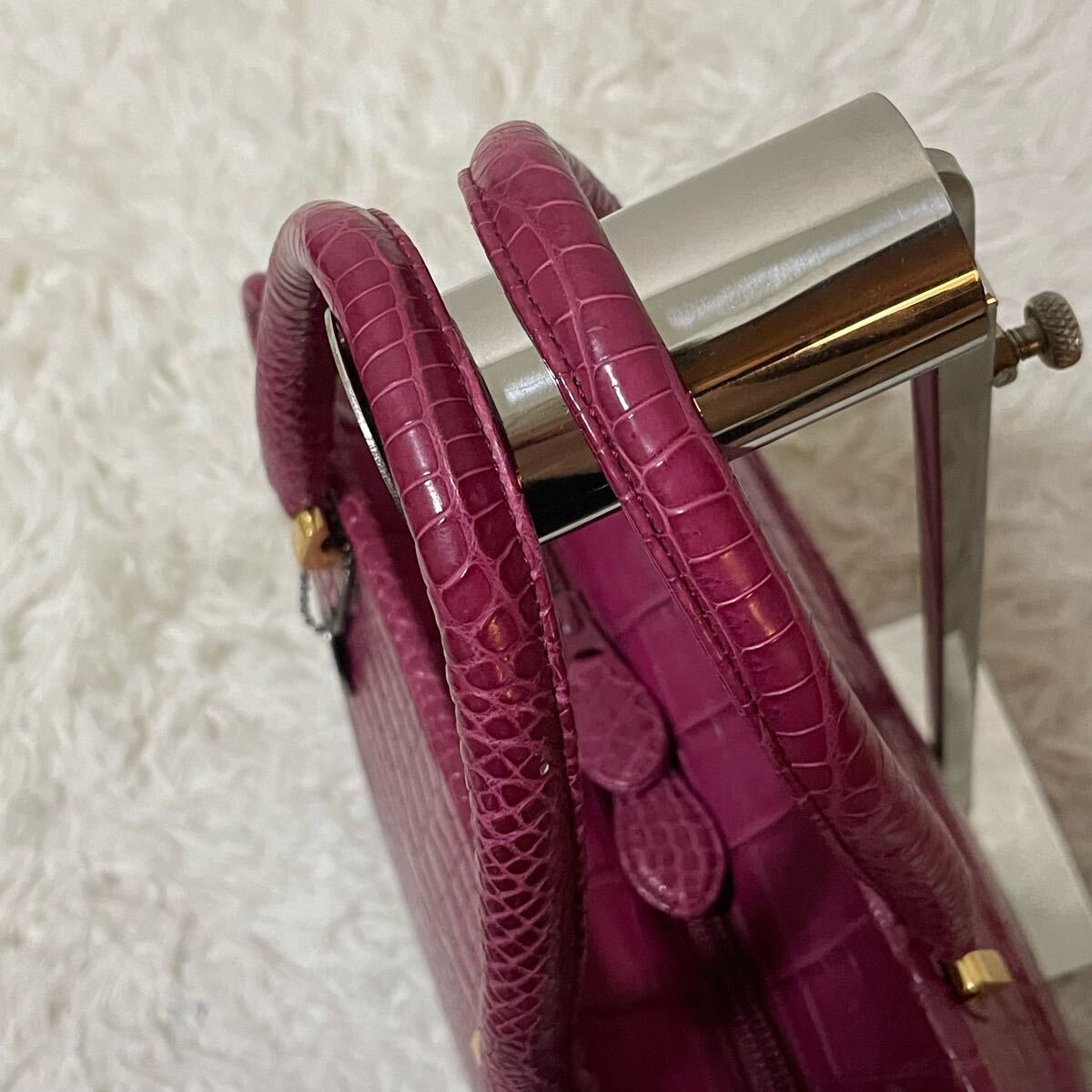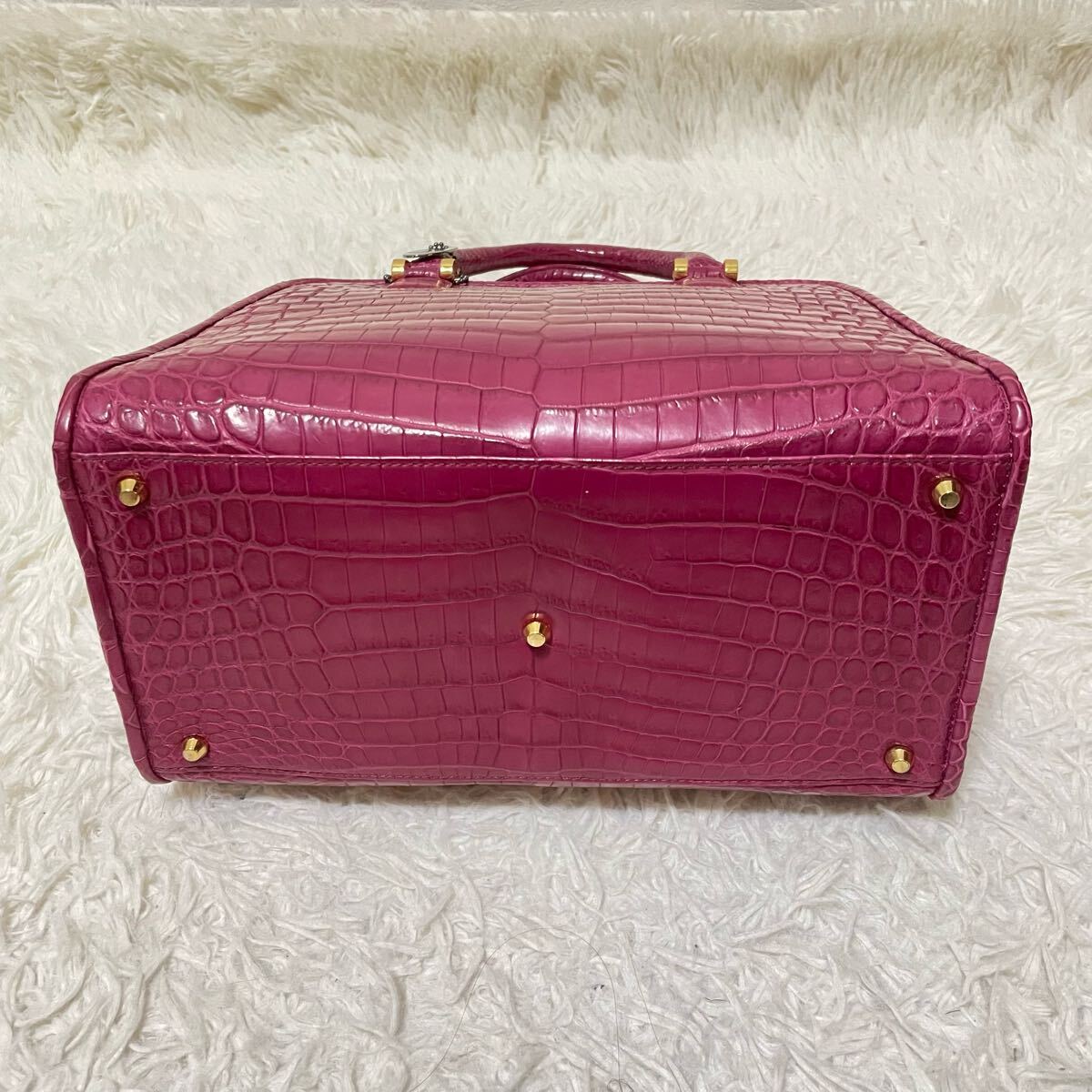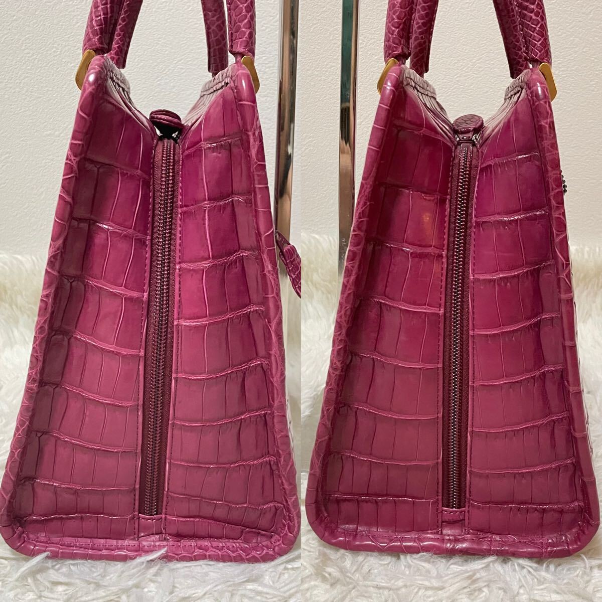 未使用品 La Luce【正規JRA認証】リアルクロコダイル ハンドバッグ マゼンタピンク 希少色 センター取り Crocodile エキゾチックレザー 革