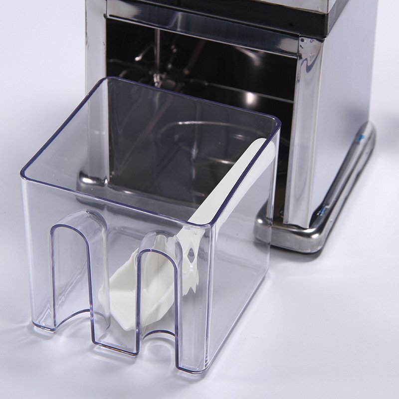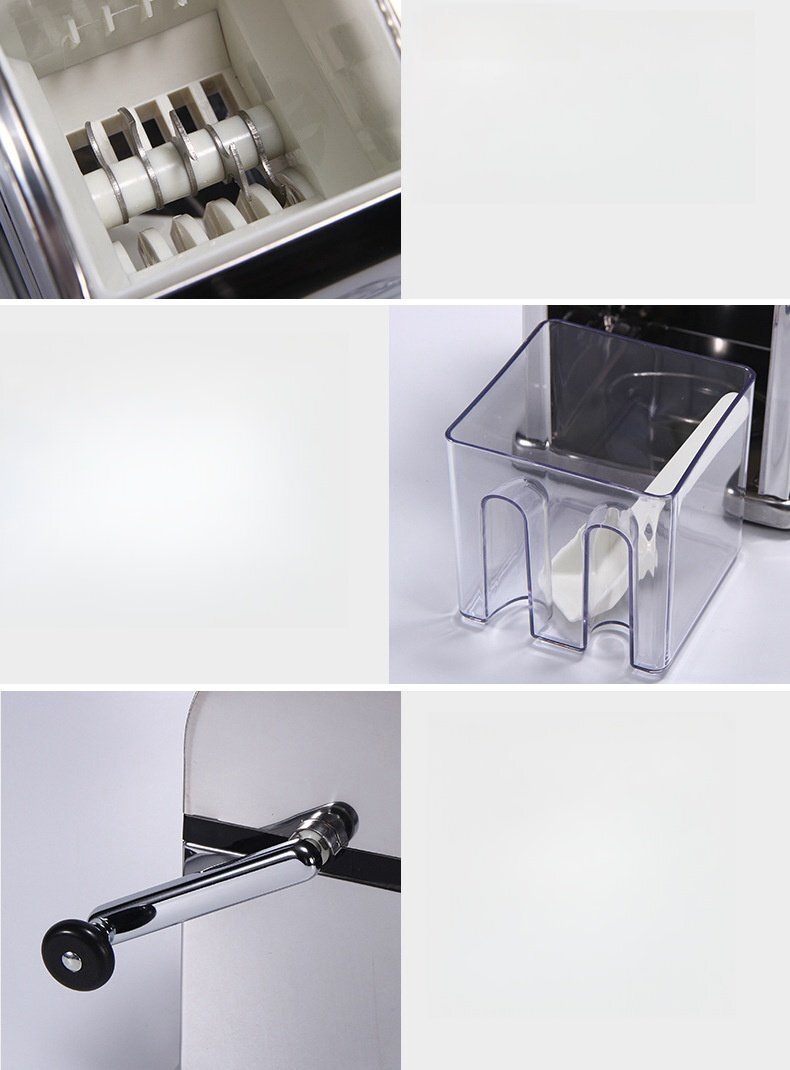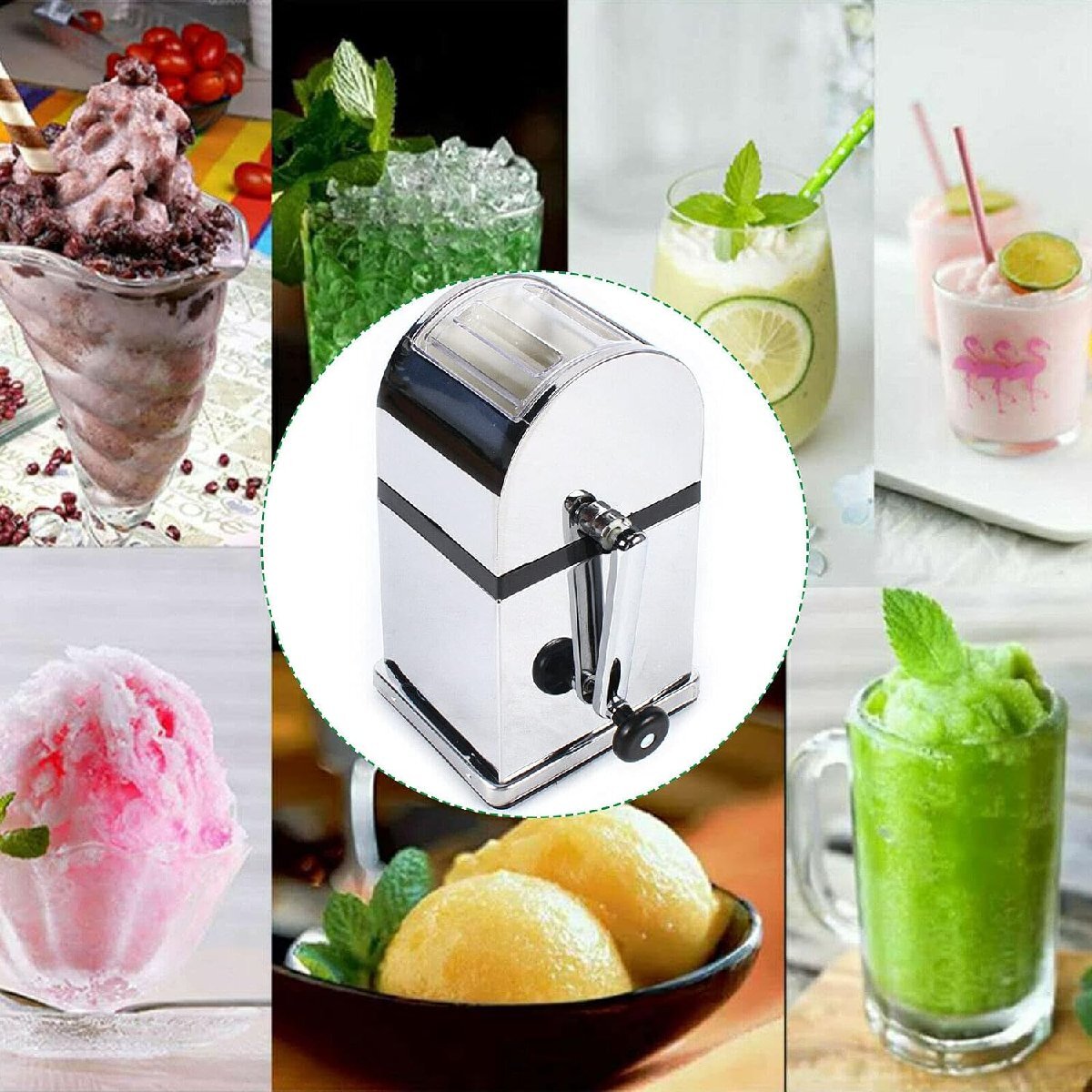 製氷機の角氷を投入し、ふたを閉めてハンドルを回すだけで、簡単におしゃれなクラッシュアイスが出来上がります。