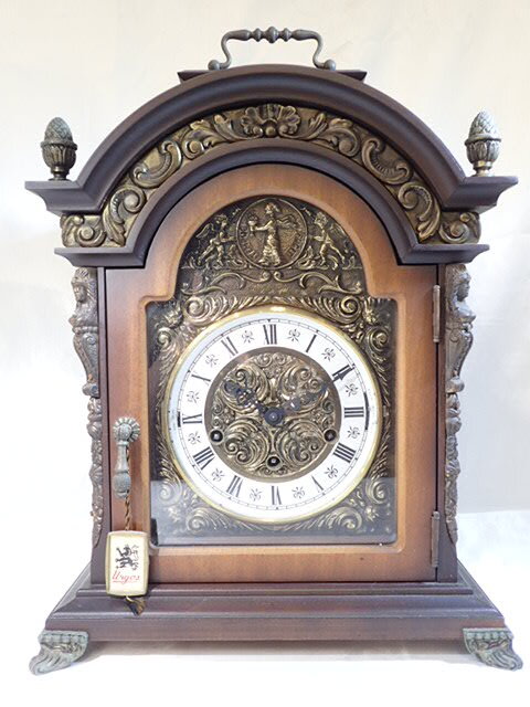 Urgos ウルゴス 置時計 ウエストミンスターチャイム 3曲目 9本鈴 鍵巻 現状渡し この機会に是非どうぞ♪ :サイズ: 約33×18×45cm (素人採寸です。ご参考程度になさって下さい。) 商品はお写真の物で全てです。 画像はデジカメ撮影となります。 忠実な再現を心がけておりますが、若干お色が異なる場合が御座いますので、ご了承ください。 〇今日現在動作しておりますが、チャイムの動作に難が御座います。 ハンマーが弱いようで、音が鳴りません。 恐らく分解清掃で直るものかと思いますが、トラブル回避の為にも、OH前提でメンテナンスできる方のみ、ノークレームノーリターンの範囲で入札をお願い致します。 〇鍵巻は付属いたしません。 |