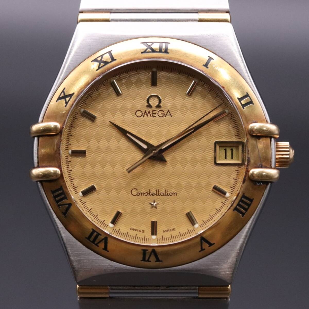 1円 オメガ コンステレーション クォーツ 腕時計 メンズ デイト ゴールドカラー文字盤 ジャンク 純正ブレス OMEGA |