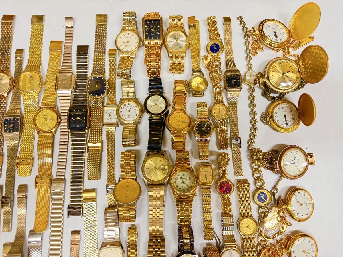 腕時計 ゴールドカラーのみ 90本セット セイコー シチズン SANDOZ RICOH TECHNOS renoma BUREN JUNCTION