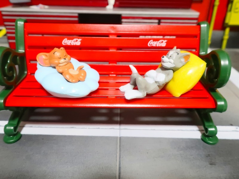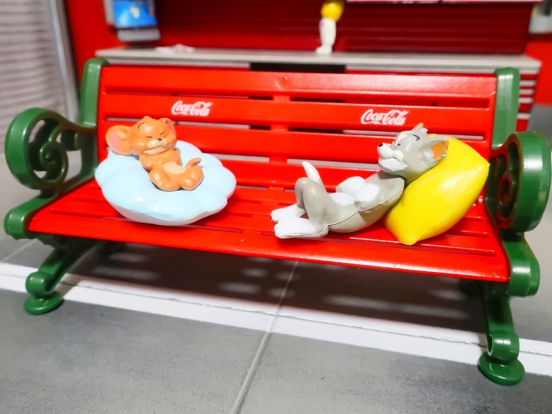 トムとジェリー がベンチですやすやと昼寝しています♪ 2個セット フィギュア | |||
