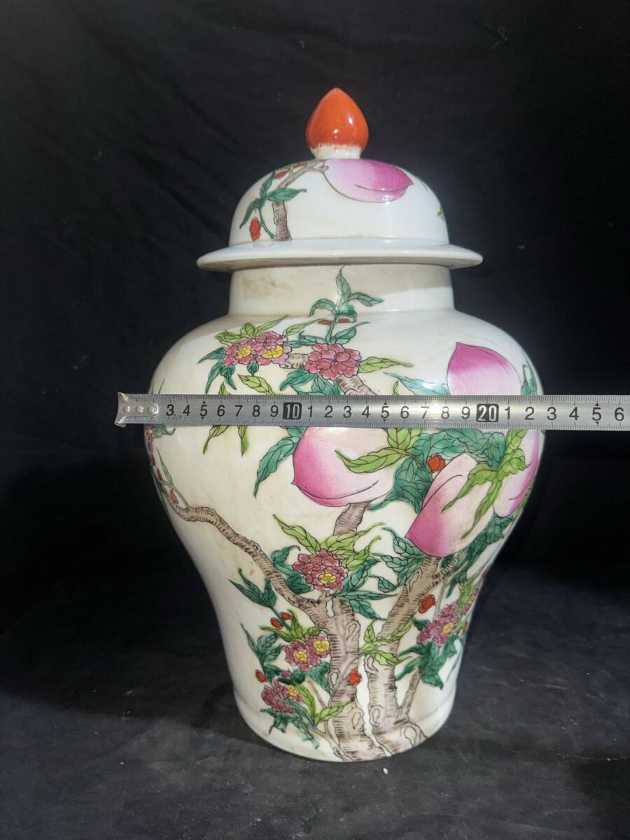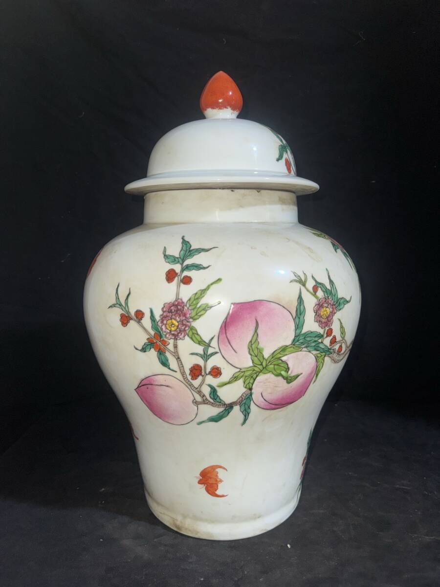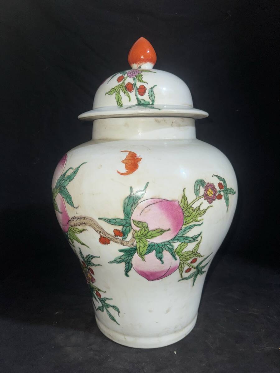 【超珍館蔵】清 康熙年制款 古陶瓷品 粉彩 壽桃 將軍罐 陶藝 古賞物 古董品 古美術品 時代物 旧家蔵出 稀少珍蔵品
