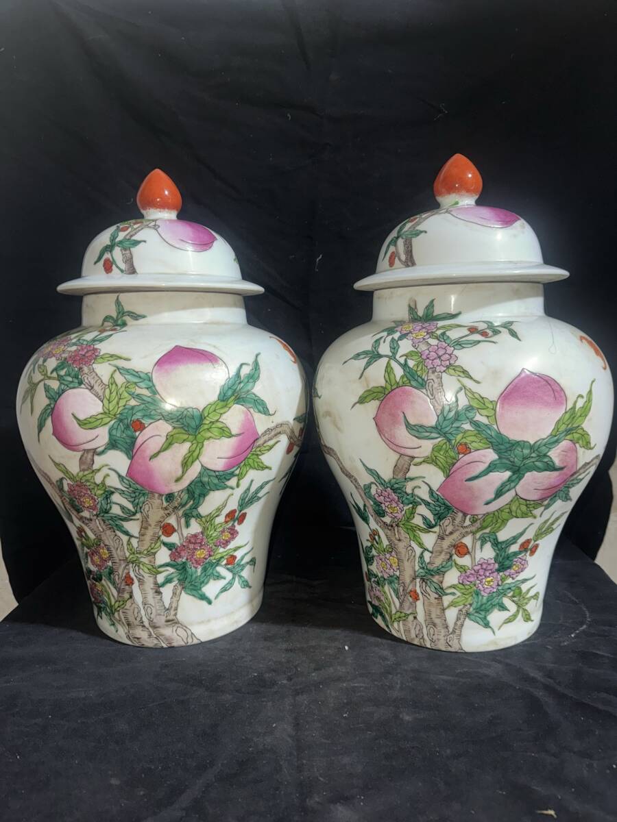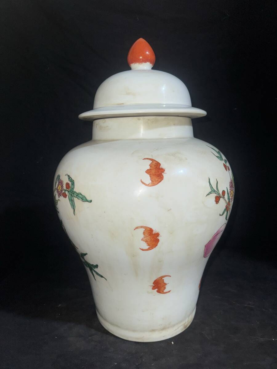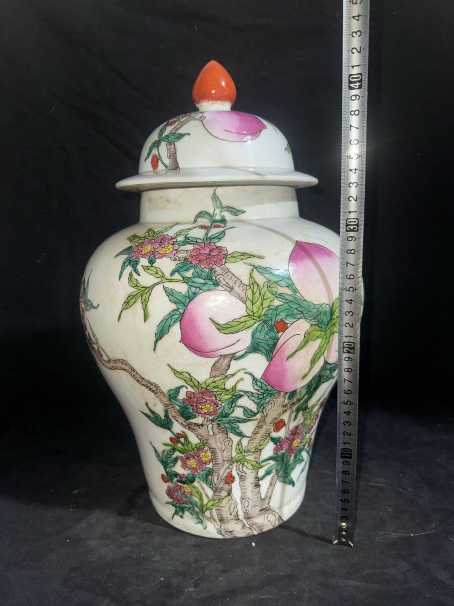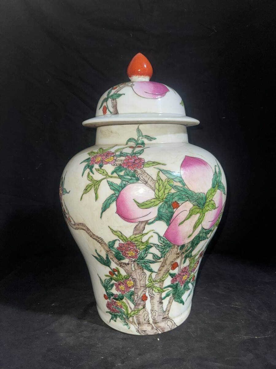 【超珍館蔵】清 康熙年制款 古陶瓷品 粉彩 壽桃 將軍罐 陶藝 古賞物 古董品 古美術品 時代物 旧家蔵出 稀少珍蔵品