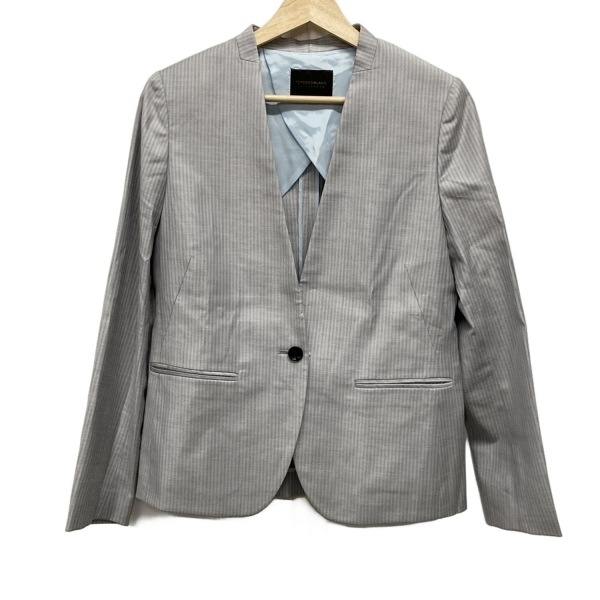 トゥモローランド TOMORROWLAND サイズ38 M - グレー×ダークグレー レディース 長袖/ストライプ/肩パッド/春/秋 美品 ジャケット