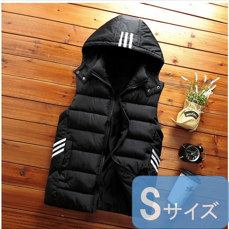 フードが取り外せる メンズ ダウンベスト 999 ブラック Sサイズ 中綿ダウン 中綿ベスト キルティング アウター 防寒 秋冬 暖かい