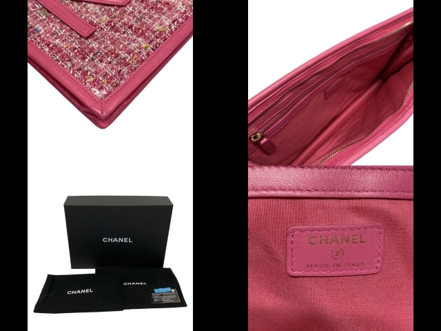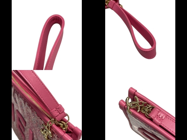 シャネル CHANEL クラッチバッグ マトラッセ レザー ピンク×アイボリー×マルチ ゴールド金具 バッグ