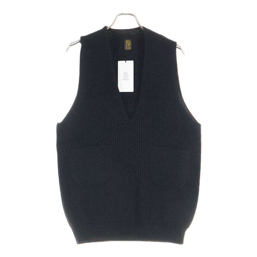 BATONER バトナ― SOLID WOOL RIB V NECK BIG VEST ソリッド ウール リブ Vネック ビッグ ベスト ブラック BN-22FL-033