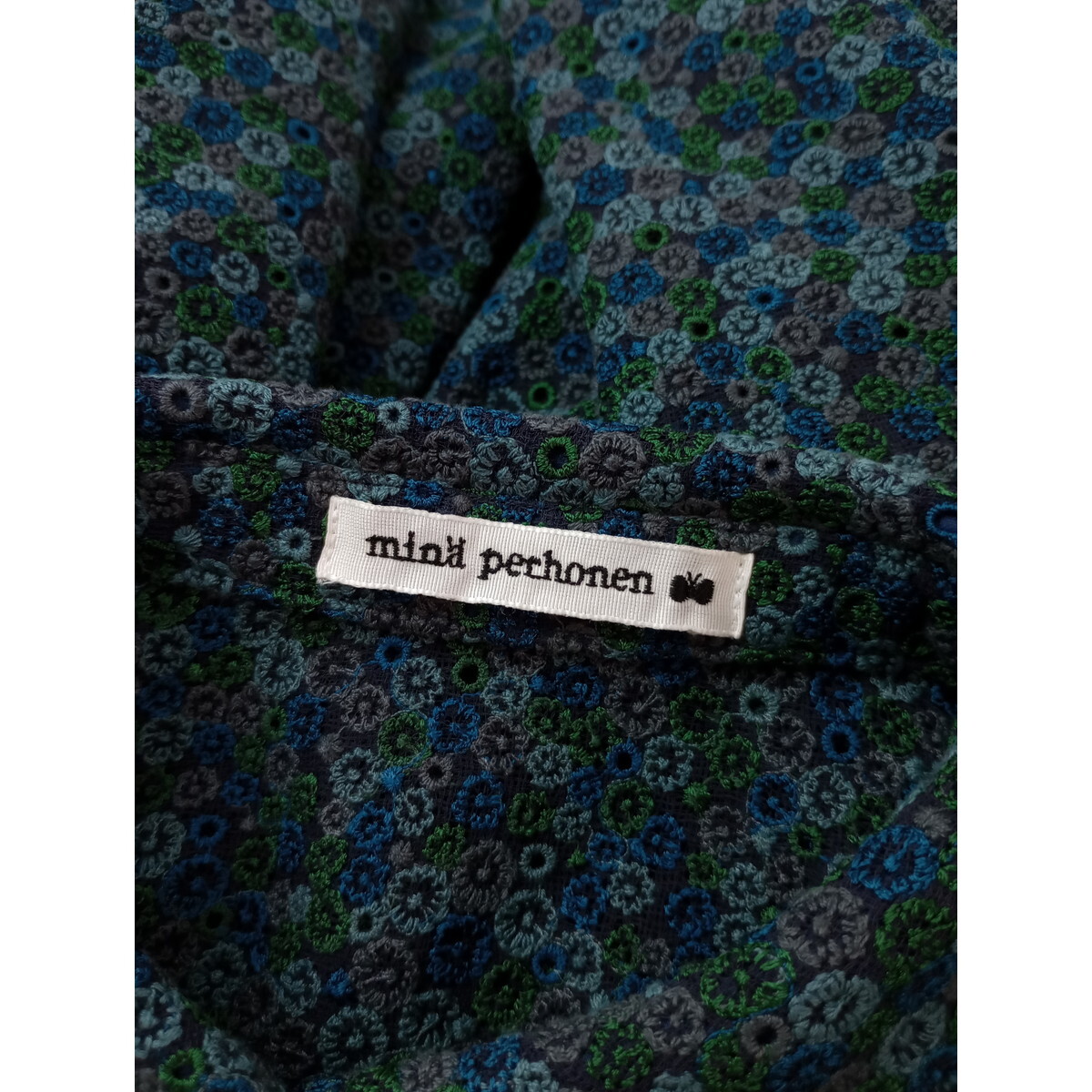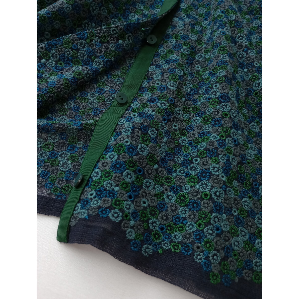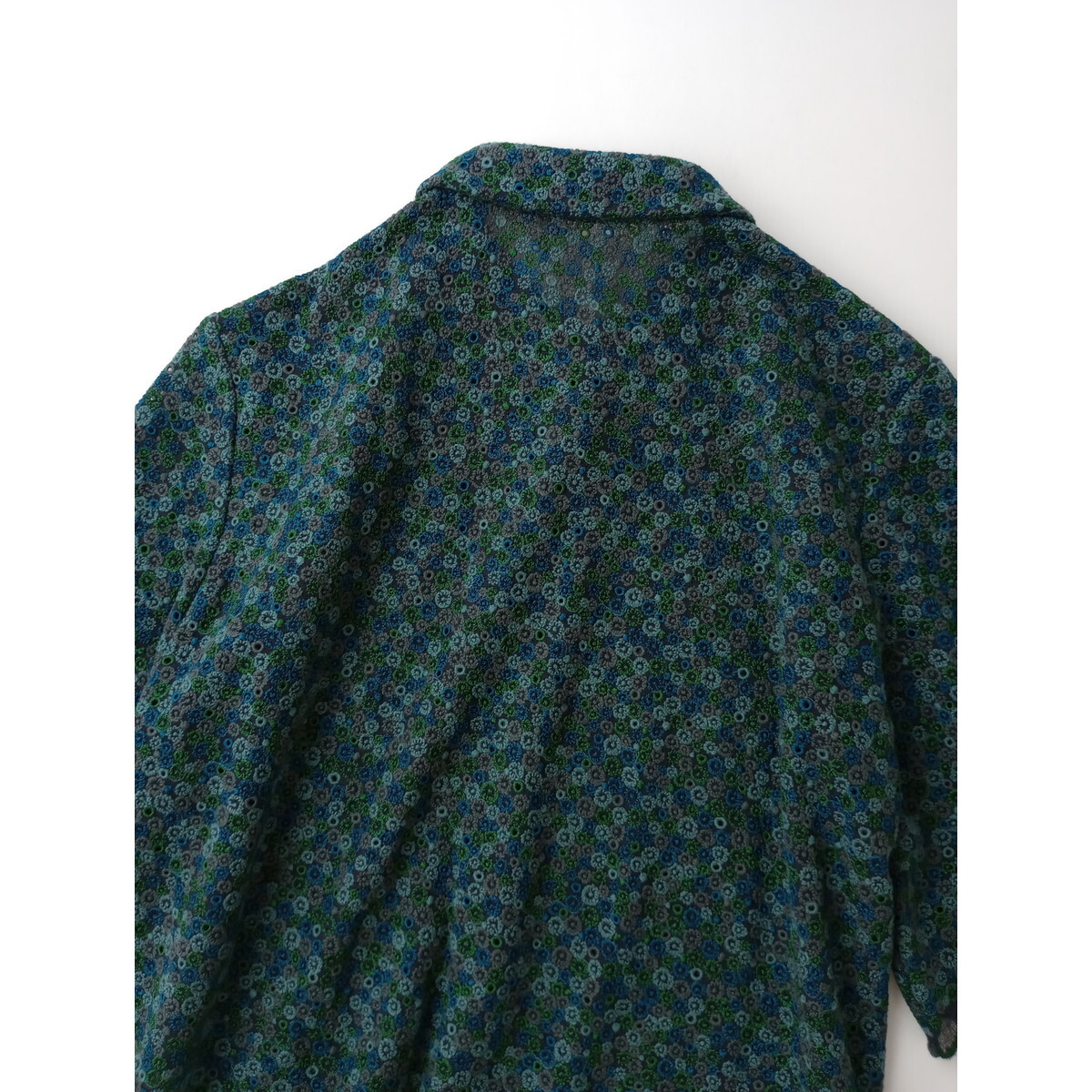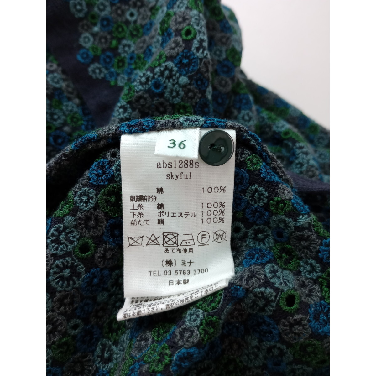 mina perhonen ミナペルホネン skyful 刺繍 スモールカラー 半袖 ブラウス シャツ グリーン 36