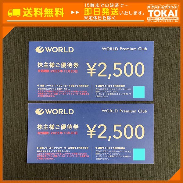 FR6p [送料無料/48時間以内決済] 株式会社ワールド プレミアムクラブ 株主様ご優待券 2,500円×2枚 計5,000円分 2025年11月30日まで