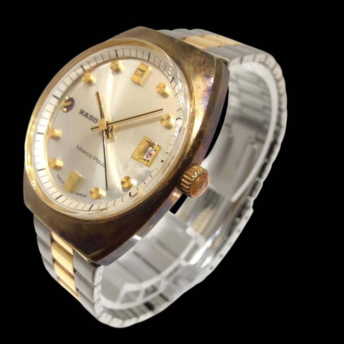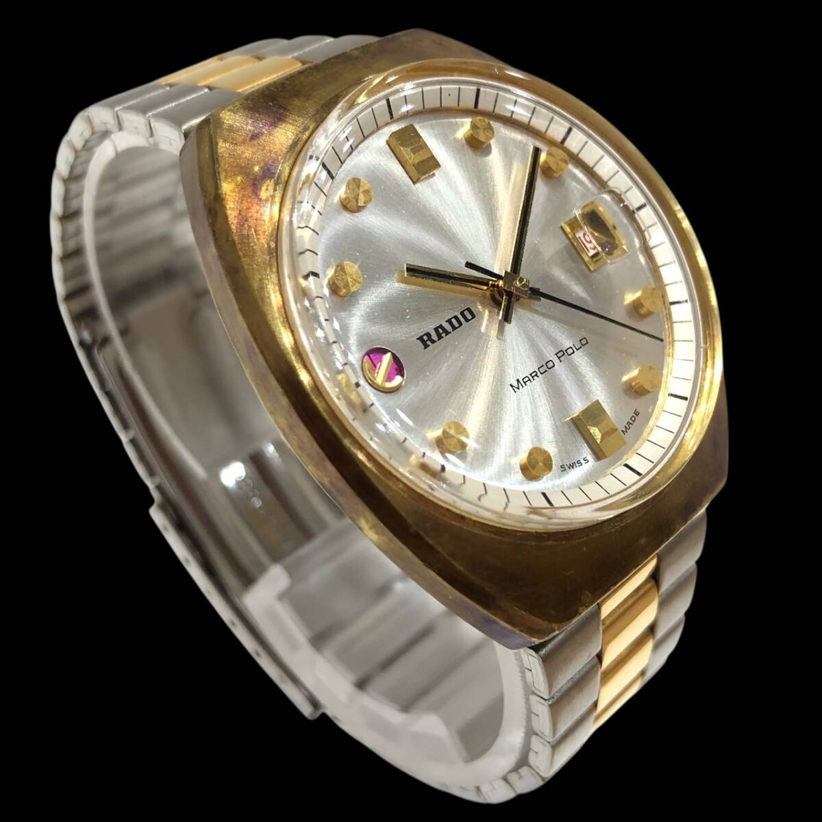 | RADO ラドー マルコポーロ 11837 自動巻き シルバー文字盤 デイト 社外ベルト メンズ 腕時計 稼働品 |