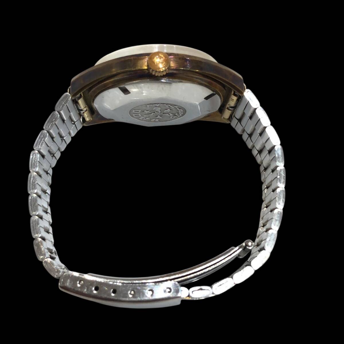 | 仕様 | ムーブメント:自動巻き 文字盤カラー:シルバー系 ケース形:ラウンドフェイス カレンダータイプ:日付表示 採寸に関しまして差異がある場合がございます。 |