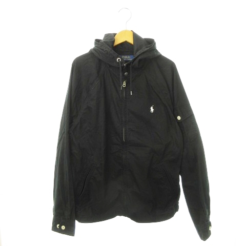 ポロ ラルフローレン POLO RALPH LAUREN マウンテンパーカー ジップアップ 長袖 ラグランスリーブ ロゴ刺繍 XL 黒