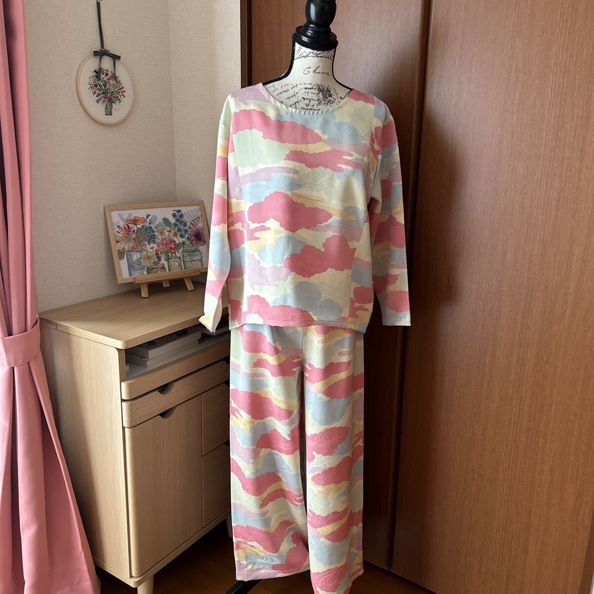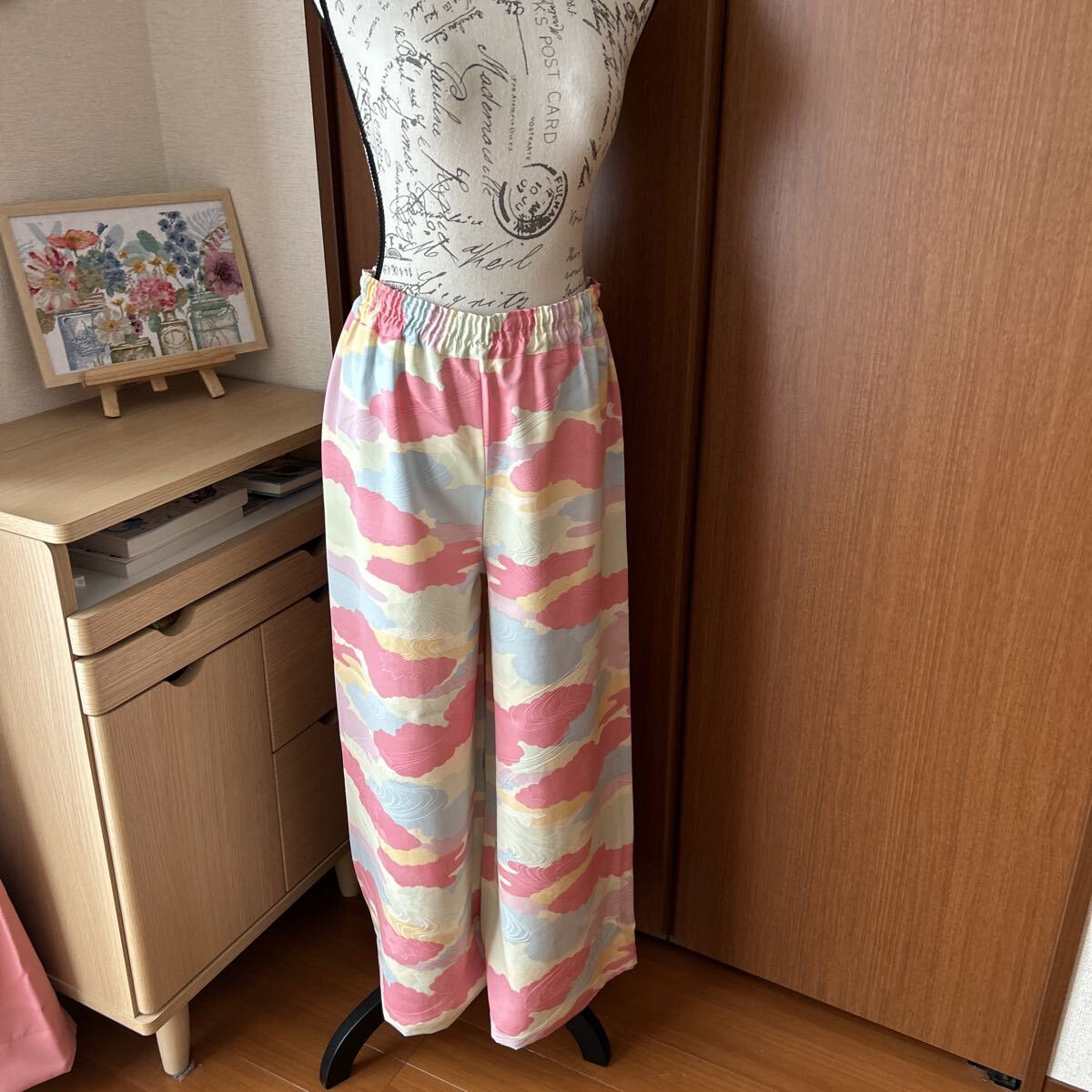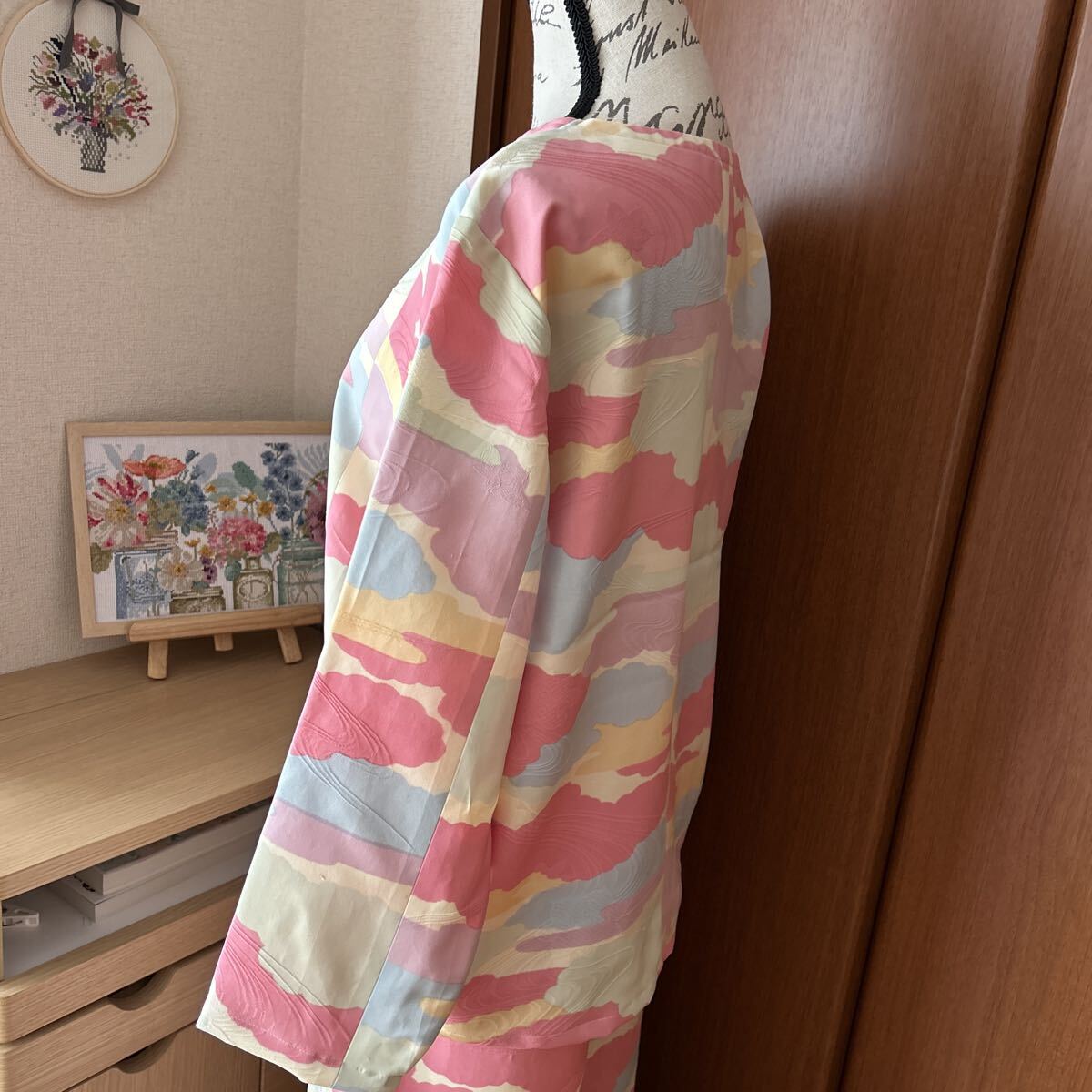 クリーム地にパステルカラーの雲柄の小紋を解いてホームクリーニング後仕立てました。