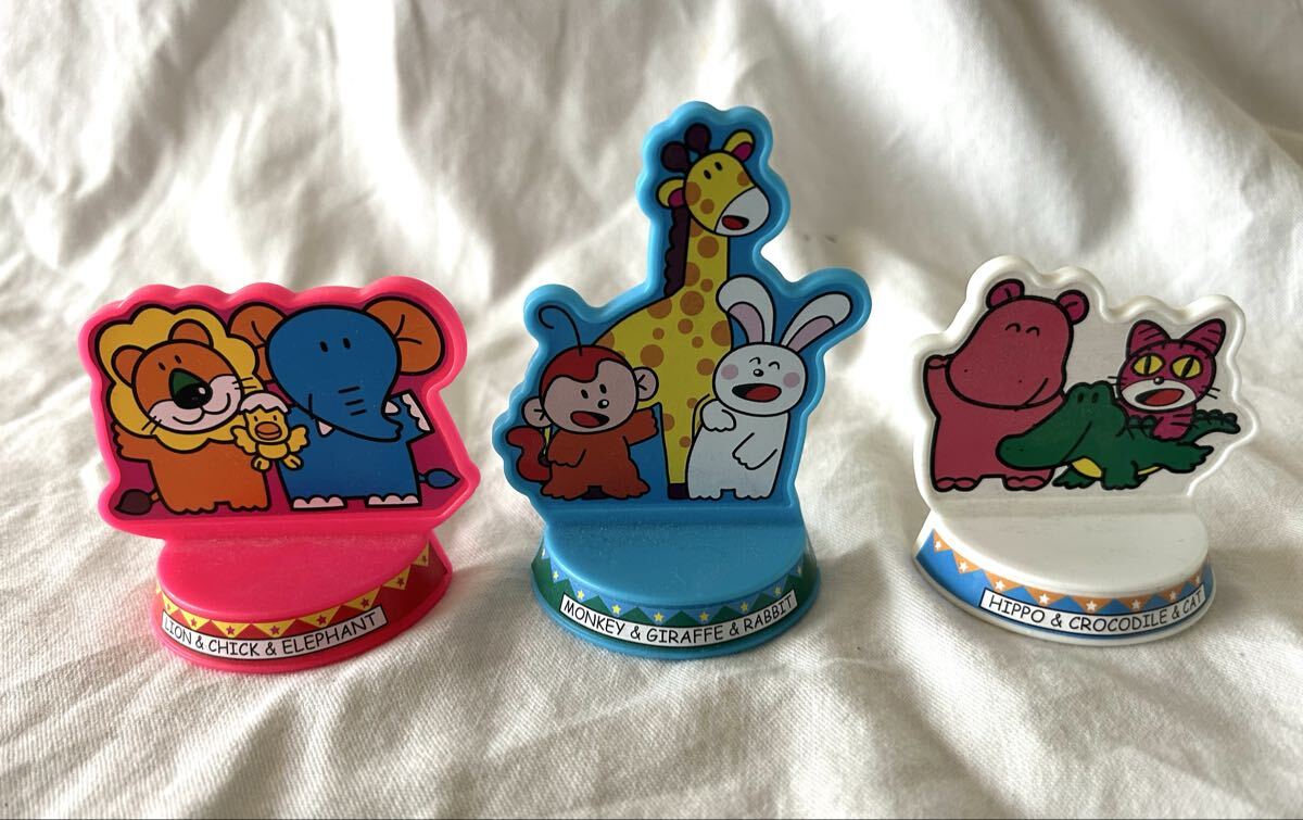 カラフルな動物キャラクターのスタンドフィギュアセット。