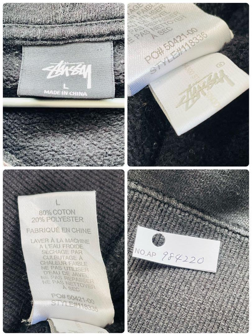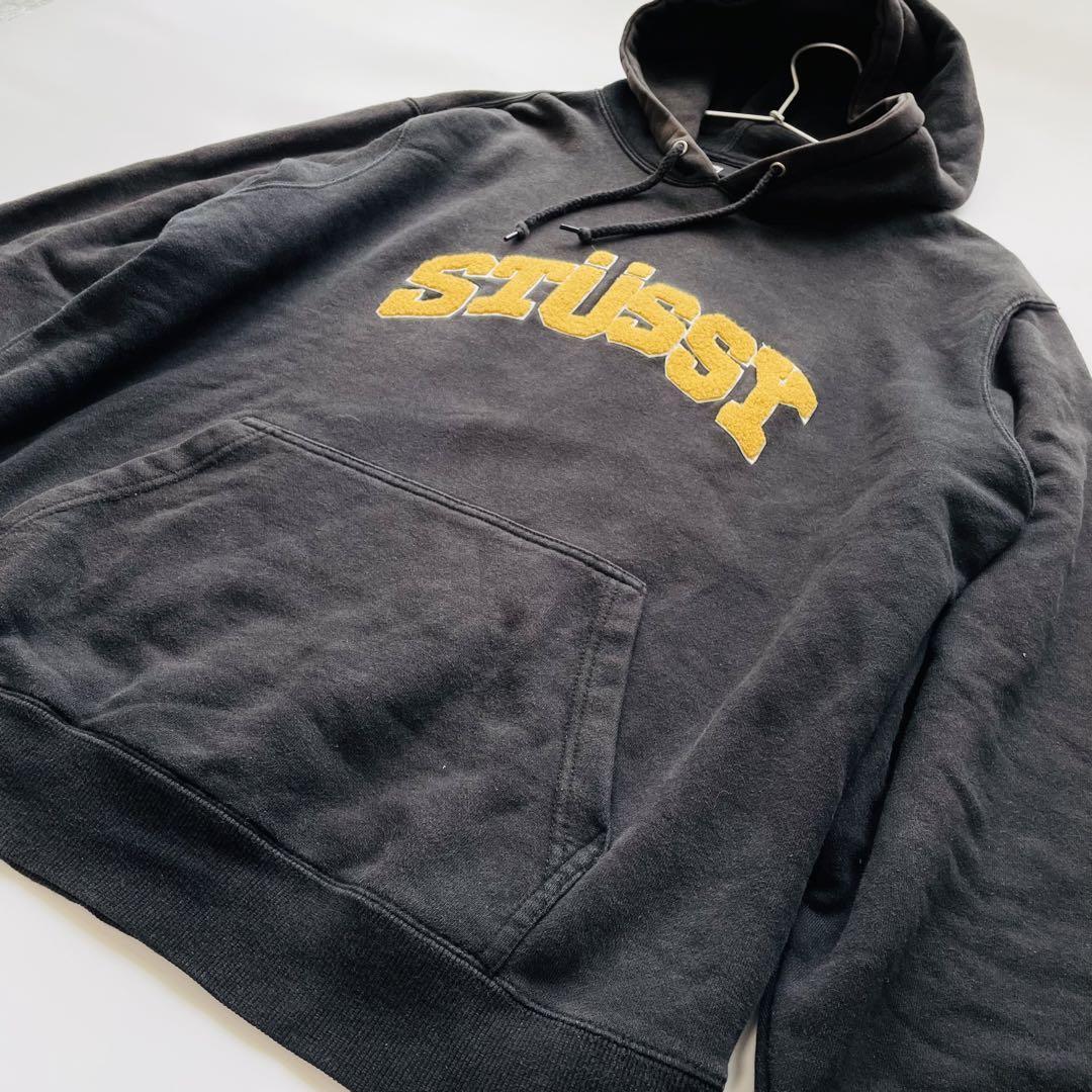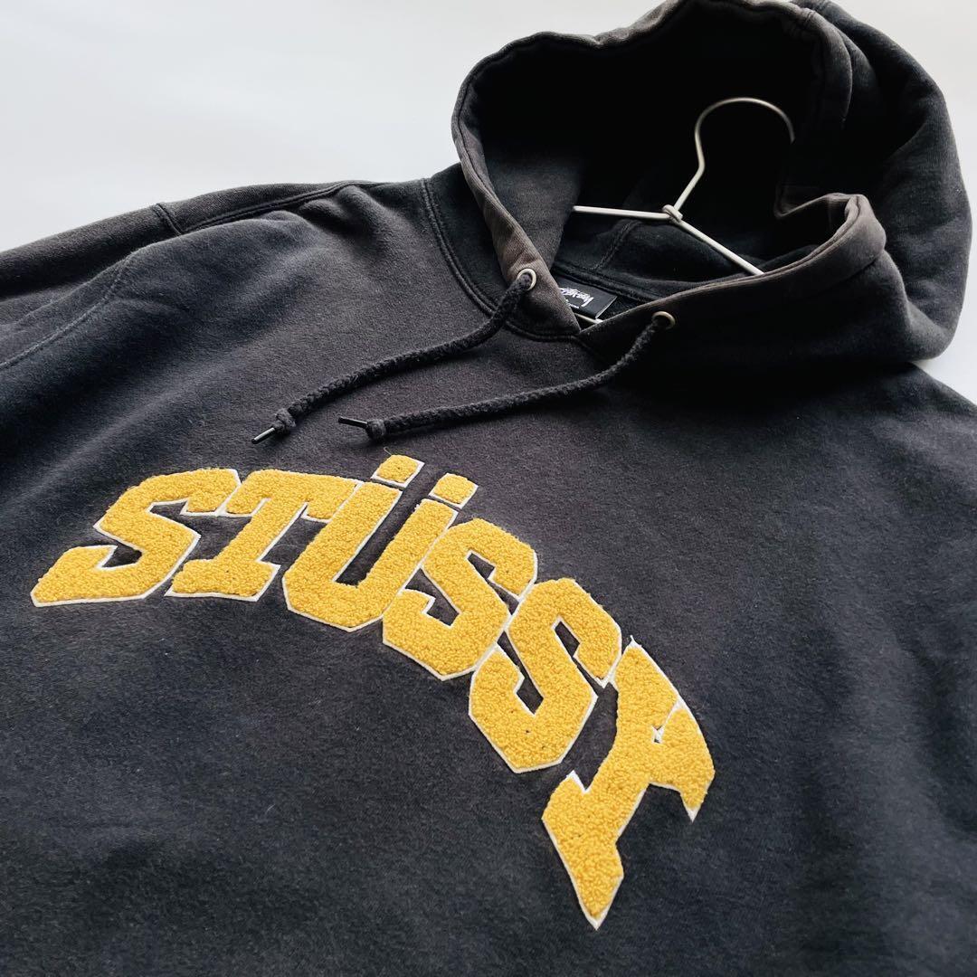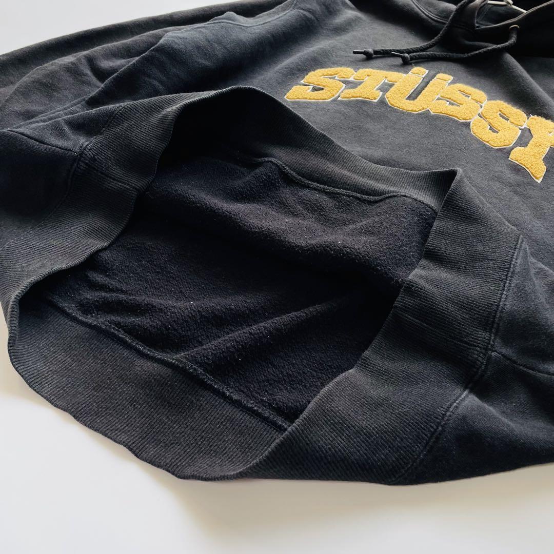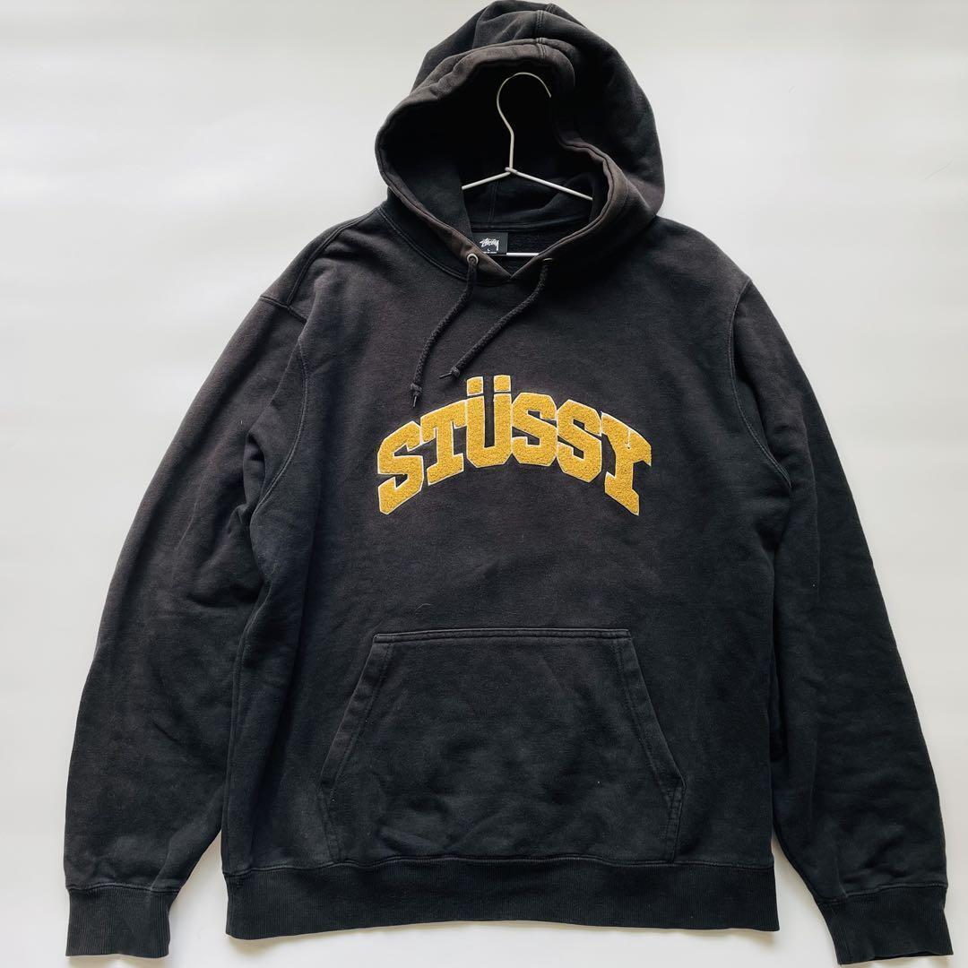 STUSSY ステューシー アーチロゴ 刺繍 プルオーバー パーカー ブラック Lサイズ メンズ 裏起毛 コットン×ポリエステル