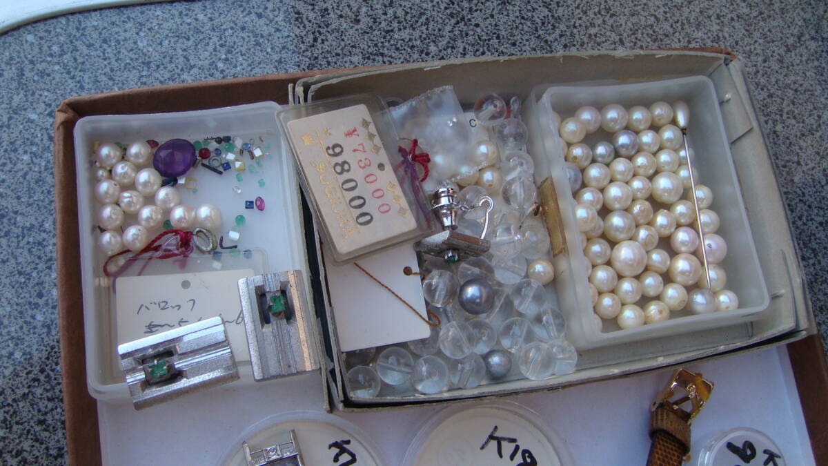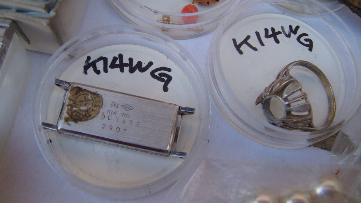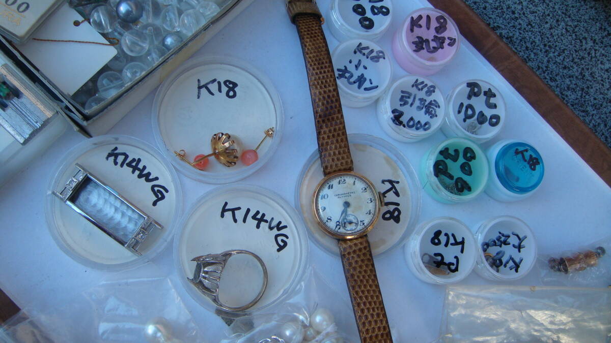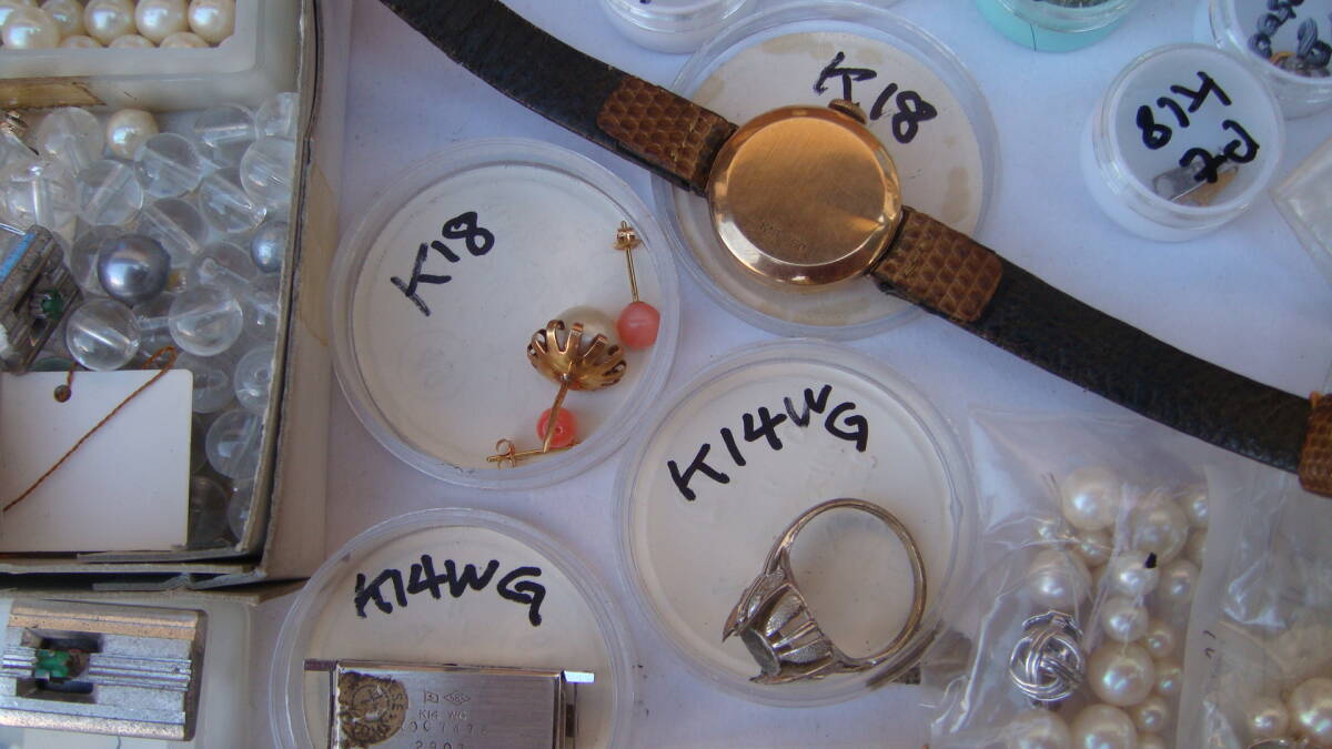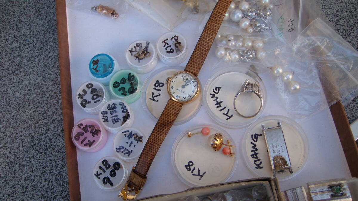 時計部品など、金分析用にストックしていたものです。 小さいボックスのものは4g位あると思います K18・K14とあるものは刻印を確認しています。 アンティーク手巻きオリンパスも動きています。 1,000円からスタートのジャンク出品です 状態についての保証は一切いたしません。 NCNRご理解いただける方の入札をお待ちしています。 年数経過あり、傷や汚れなどあるものとお考え下さい。 経年による劣化が考えられます、ご理解の上ご検討ください。 外観については写真にてご確認ください。 経年による劣化、スレやヨゴレなどついていることがあります。 商品画像に写らないイタミ、キズ、汚れがついている場合あります。 完璧なものを求める方、神経質や細かいことが気になる方はご遠慮ください。 商品の状態の項目は主観のため目安程度に捉えてください。 状態については写真や説明文を確認ください。 説明に記載されていないことがらは未チェックとお考え下さい。 思っていたものと違った。 記載がなかったので当然こうだと思った。 上記のような問い合わせが最近また増えております。(対応しません) ※ジャンク品のまとめなどはすべてチェックしきれませんのでジャンクとして出品しています。 思いがけないものが入っていることも多々ありますが、その中の1点を狙っての入札はおすすめしません。 (殆どの場合思ってたものと違うという結果になると思います) 商品の性質上いかなる場合もNCNRです。 ご理解のうえ入札ください。 現状でのお渡しになります。 年数が経過している商品です。 説明、写真を参照いただき、商品の特性を理解していただいたうえでのご入札をいただければ幸いです。 ノークレームノーリターンでお願いします。 画面上の色はモニタなどの環境によって実際の商品とは多少色や質感が異なって見えることがありますのでご注意ください。 他にも時計関連をはじめ、いろいろな商品を出品しております。 ぜひ当方のオークションをご覧ください。 | |