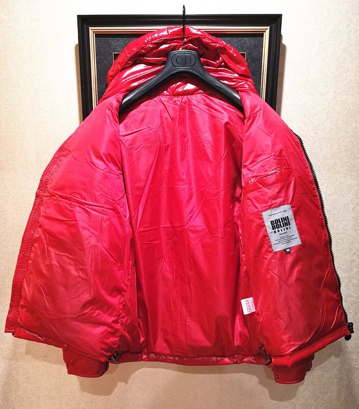 最高級※プレミアムダウン★イタリア・ミラノ発*BOLINI*ブラックライン※designer・超防寒・ダウンジャケット・50/XL*赤