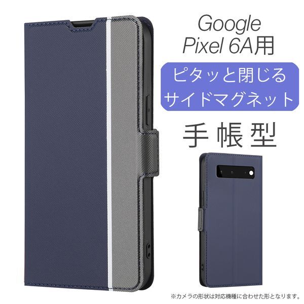 | 商品名 | Google Pixel 6A 用 スマホケース 新品 手帳型 レザー ピクセル マグネット 磁気 カード収納 携帯 ケース TPU 無地 ネイビー |