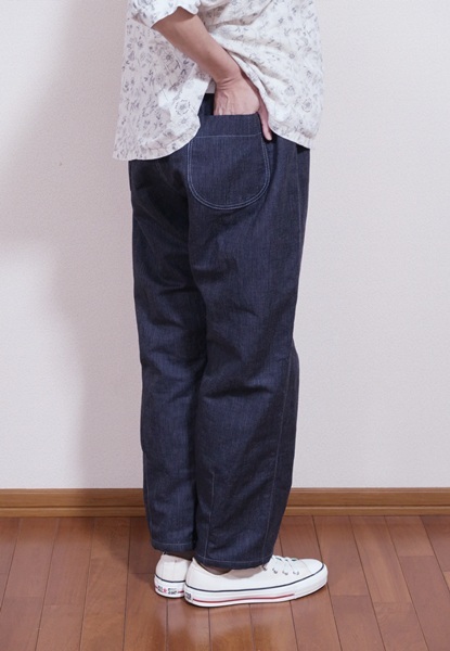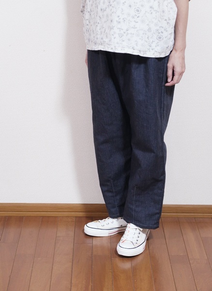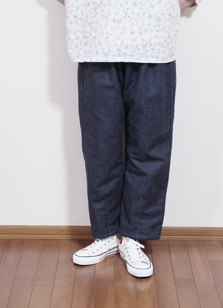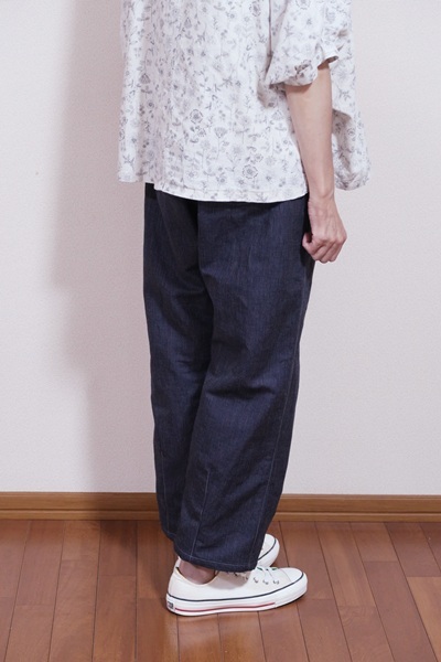 ハンドメイドE デニム・ゆったりパンツ7 (丈94すそ幅21) ナチュラル服