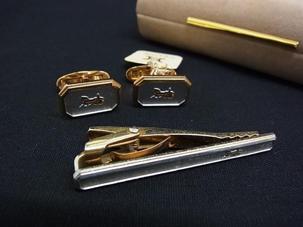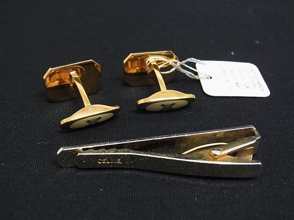 ■美品■ CELINE セリーヌ カフス カフリンクス タイピン アクセサリー ビジネス メンズ 2点セット シルバー系×ゴールド系 DI0845