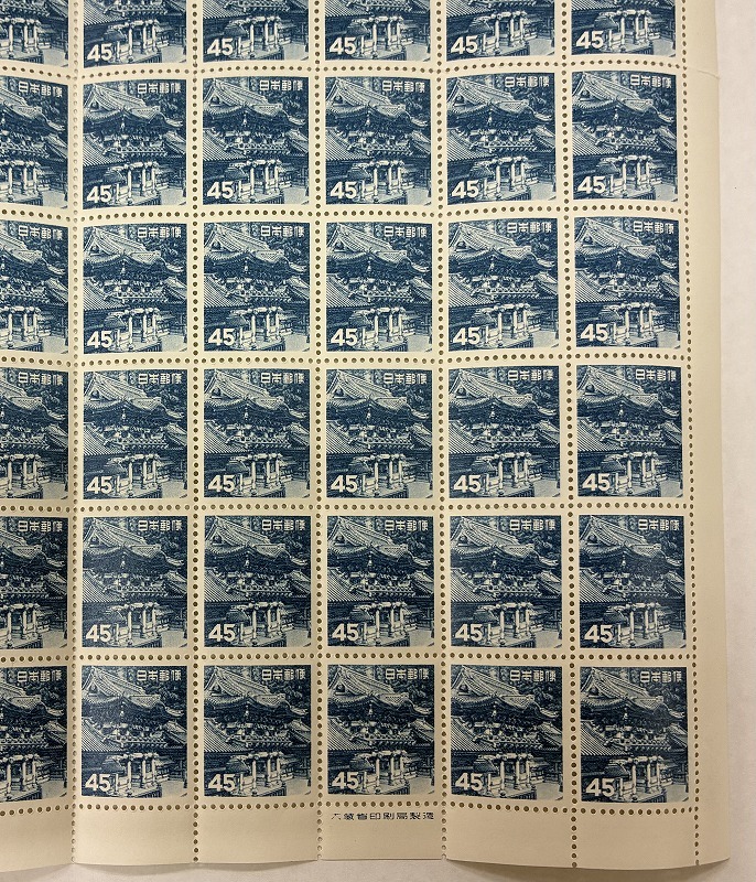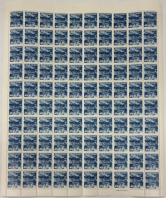 ★1円~日光陽明門・銘版付き・普通切手・100面シート・未使用・1枚★
