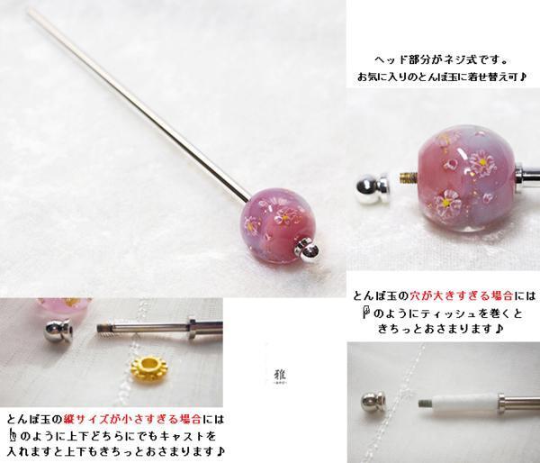 ・とんぼ玉かんざしはトップが緩んできたり硬くて外れない場合はゴム手袋をお使いいただくと容易に開け閉めができます。