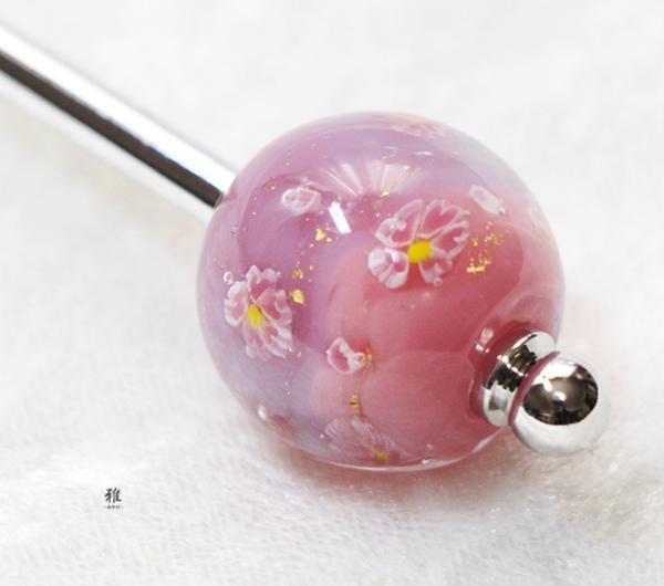 優しい藤色とピンクのコラボに美しいお花と絶妙な金箔が美しい高級トンボ玉かんざしをお作り致しました。(*´_`*)