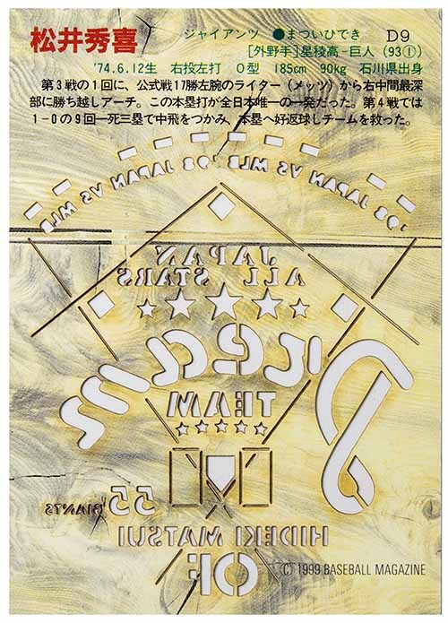 即決! 1999 BBM ドリームティーム 松井 秀喜 (OF) ダイ カットインサート・カード D-9