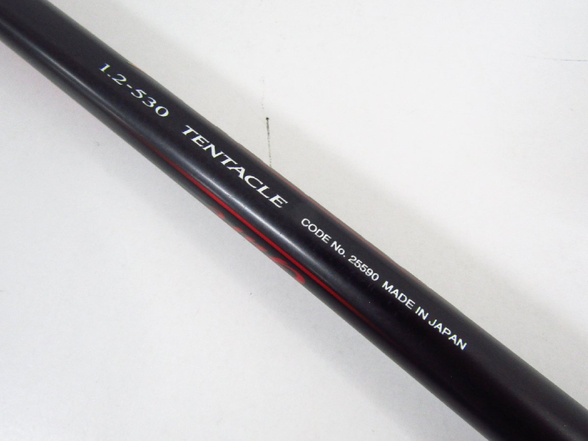 | ※こちらは一般のお客様から買取をした中古商品です。 【状態】 多少のスレなどが見られますが特に目立つダメージは見られず、きれいな状態です。 (※状態等は掲載写真をご参考下さいませ。) 仕様寸法:530cm 適合ハリス:1~4 自重:215g オモリ負荷:1~4 | |||||||