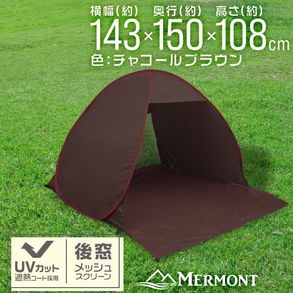 MERMONT - メルモント - ワンタッチ サンシェード (ワンタッチテント ポップアップテント ビーチテント) 日よけ 前側出入口 ロングシート (約)全幅142×全奥158×全高108cm カラー:チャコールブラウン ビーチやピクニック、アウトドアにも最適な ポップアップテントです。 余裕で寝転べる!! 後部にはメッシュ素材を使い、風通しバツグン! 強い日差しの下でも紫外線から守る遮熱コート生地採用! 6本のペグ付きなので風が強い日でも安心! ワンタッチでラクラク! 設置はパッと開くだけの組み立て不要!女性でも簡単に設置することができます。 使わない時は折りたたんでコンパクトに収納!キャリーバッグ付きなので、持ち運びもラクラク♪ 海水浴、プール、運動会、釣り、アウトドア等で大活躍の日よけテント、天体観測にもおすすめです。 |