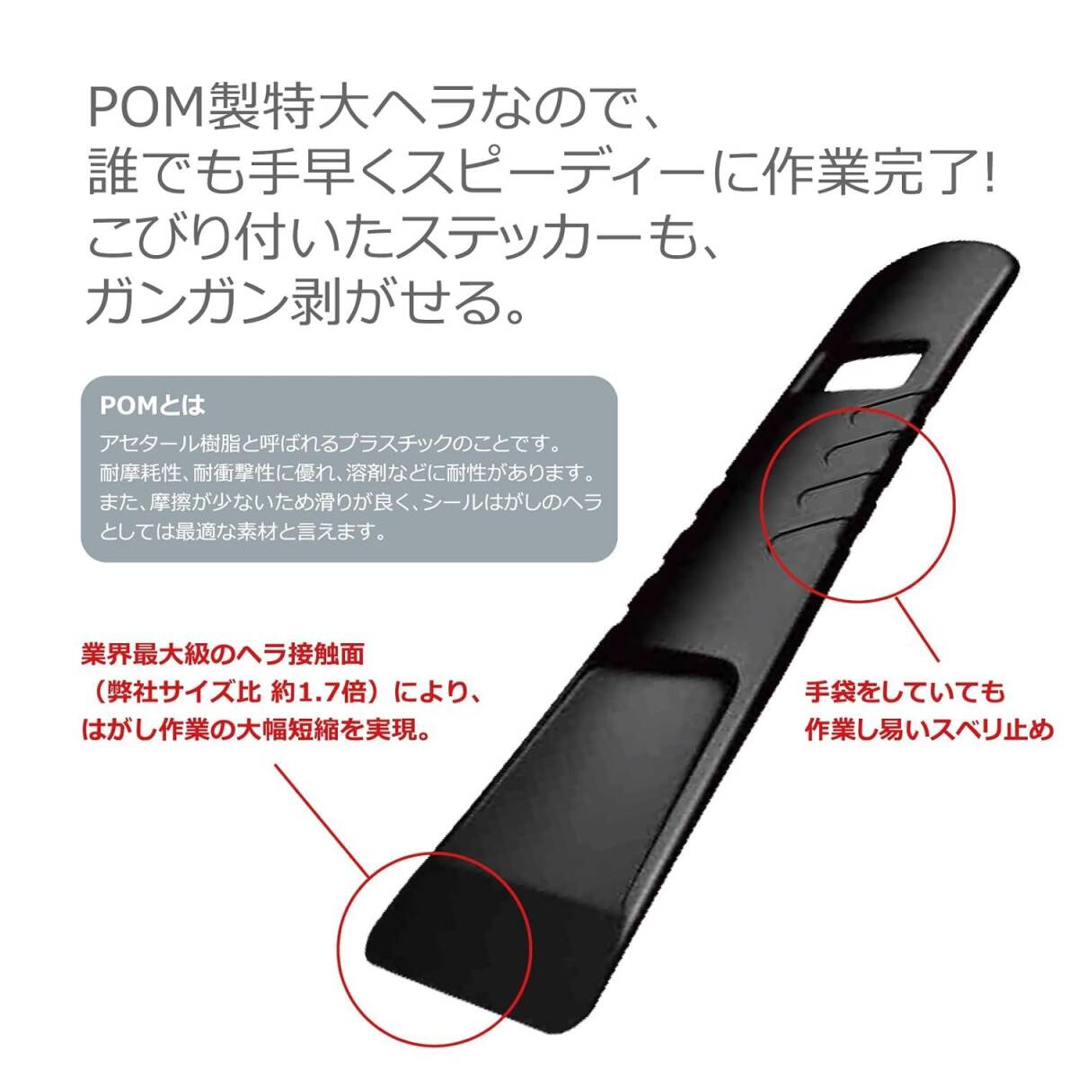 握りやすい大型ヘラ付き:POM製特大ヘラなので、誰でも手早くスピーディーに作業が完了できます。こびり付いたステッカーもガンガンがせます。