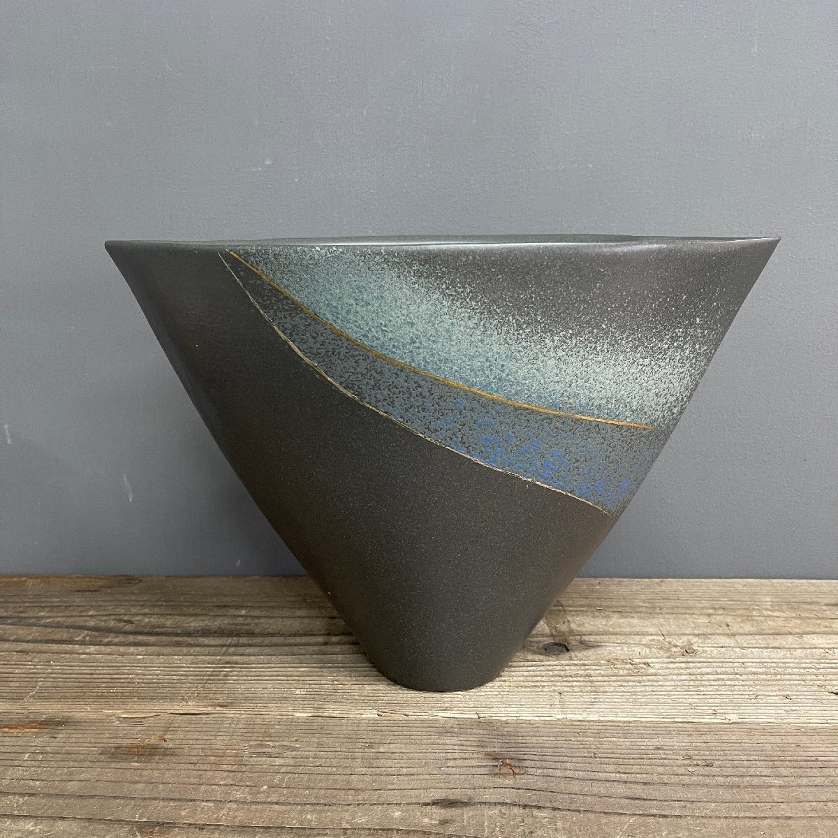 | 中古 花器 花生け 生け花 茶道 花瓶 陶器 ダークグレー 華道具 サイズ20×36×24.5㎝ |