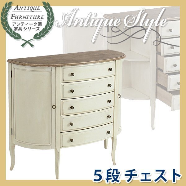 商品名 | アンティーク調 5段 チェスト W約102×D約42×H約90.5cm ホワイト 引出し 引き出し アンティーク家具 木製 アンティーク風 アンティーク インテリア 家具 五段 キャビネ キャビネット 収納 棚 タンス 箪笥 リビング シャビーシック シャビー 白 antiqueh762wh |