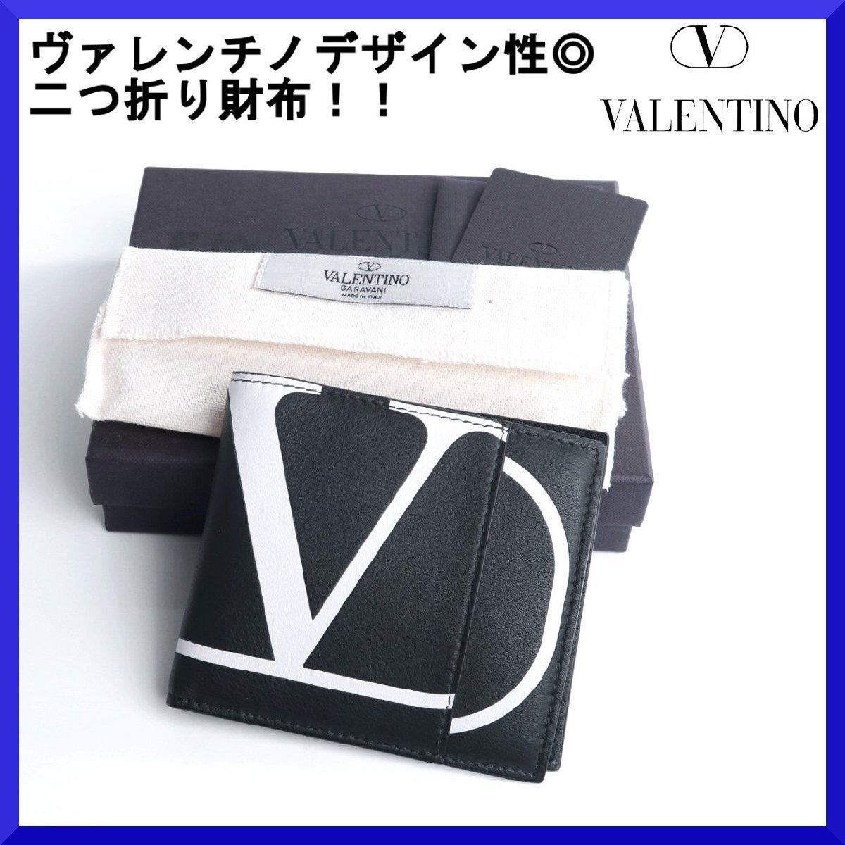 【参考価格6万】VALENTINO GARAVANI本革レザーロゴ入り二つ折り財布/ブラック/新品未使用