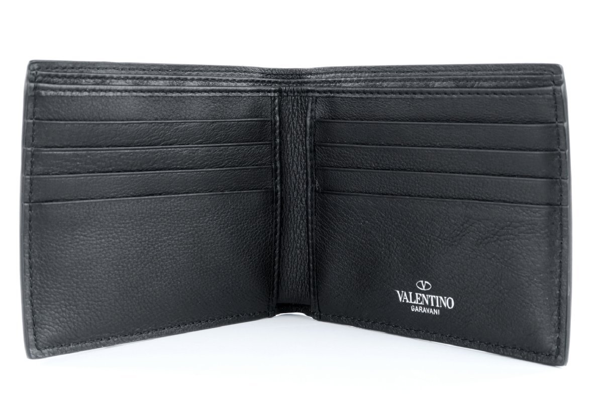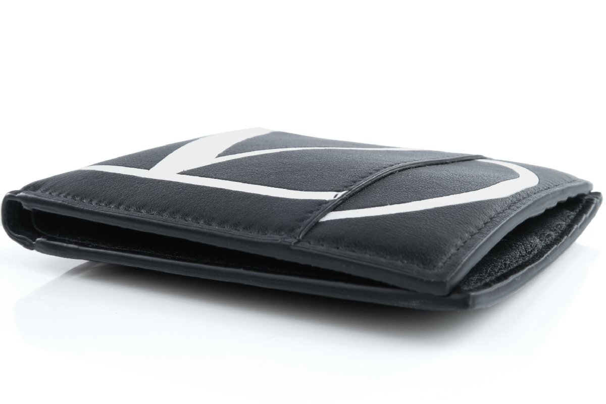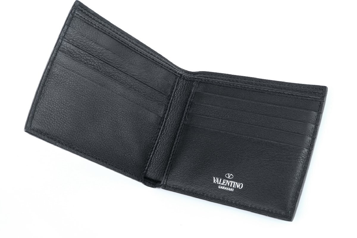 価格6万新品本物ヴァレンティノVALENTINO GARAVANI伊製【お洒落に格上げ◎ロゴ入り】二つ折り財布/ウォレット/カードケース/箱付/黒