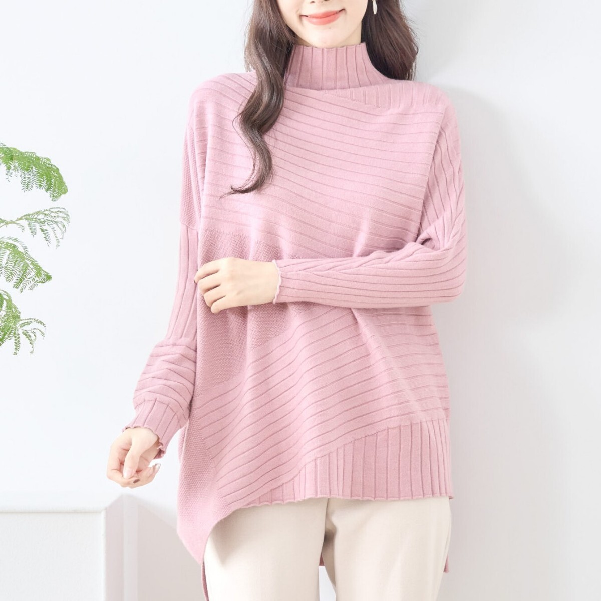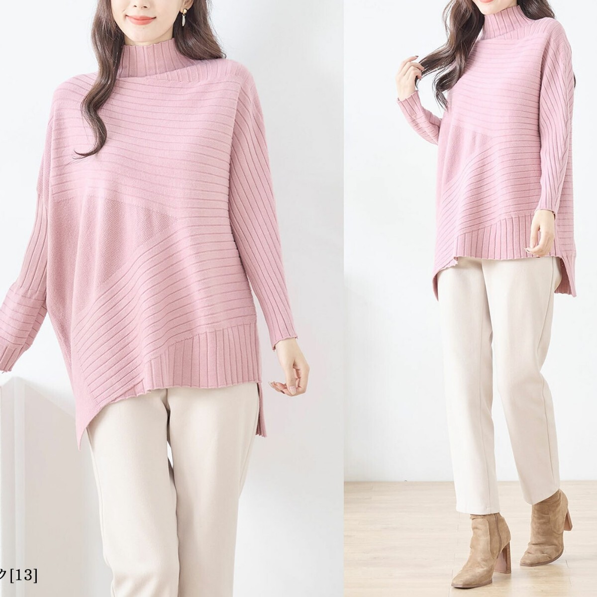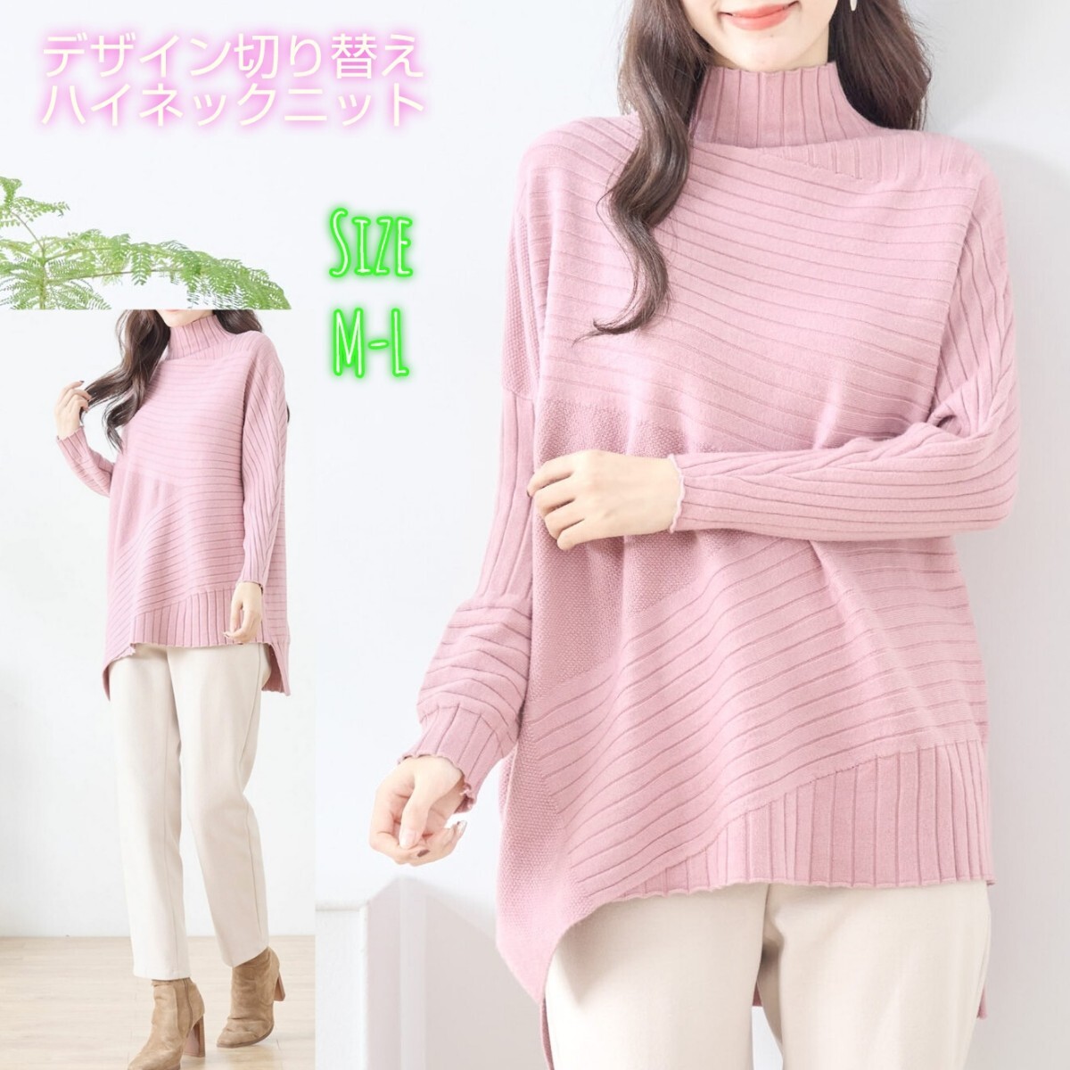 いろいろなデザインの切り替えがポイントのハイネックニットです☆
