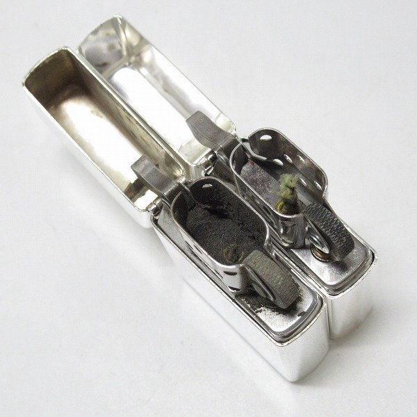 ※使用に伴い、くすみ汚れ、スレキズ、打痕、変色、焦げ付き、緑青、ヒンジのガタつき、一部ウィックの欠品等が見受けられます。 ※フリントが砕けており中で石詰まりを起こしている可能性がございます。 ※ネームと思われる刻印がございます。 | |||||||||||||||||||||||||