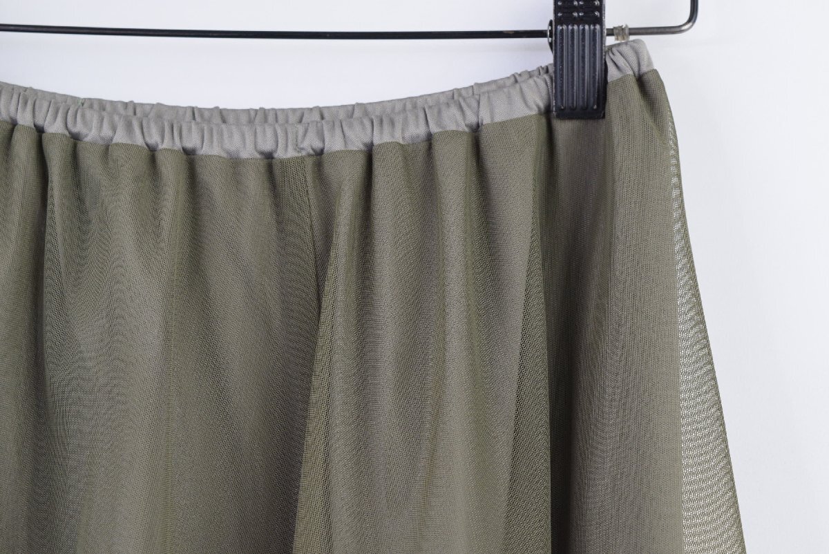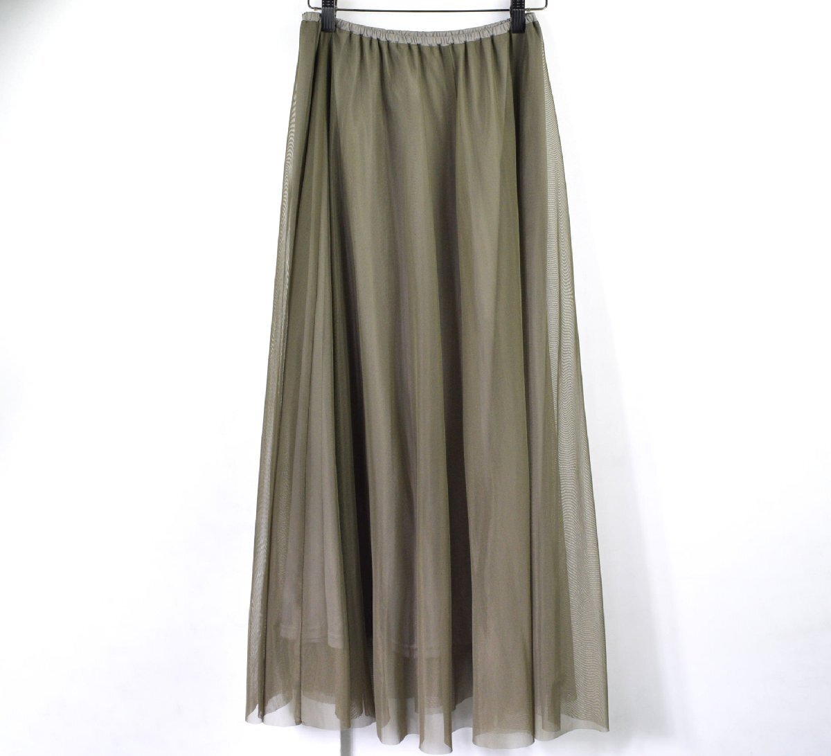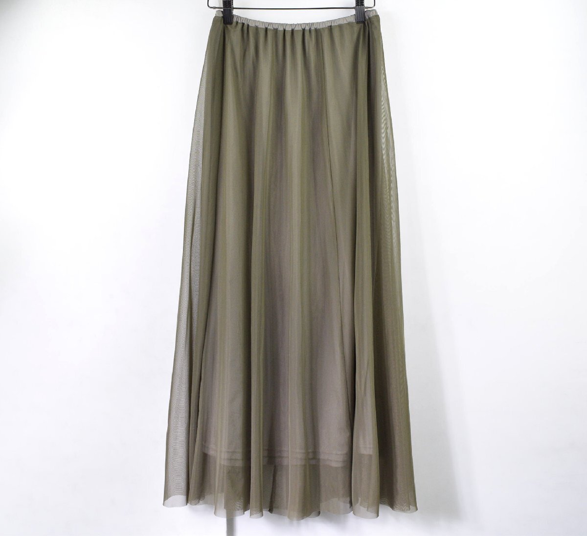 1753-25Q0336★The rejoice ザ リジョイス★美品 軽やかチュールスカート F カーキ ゴムウエスト フレアーロング