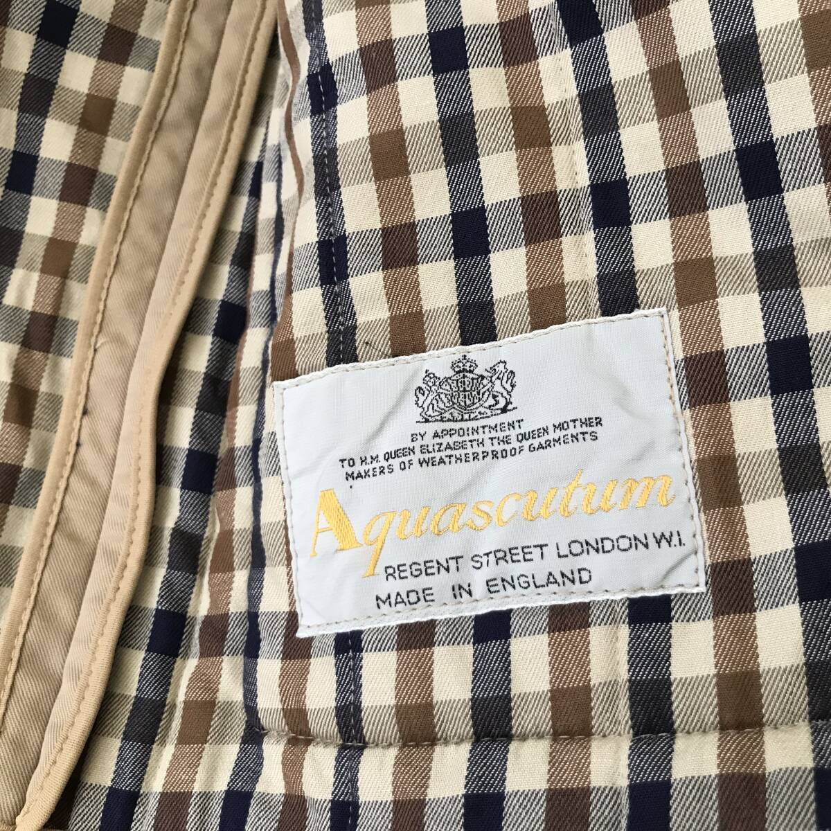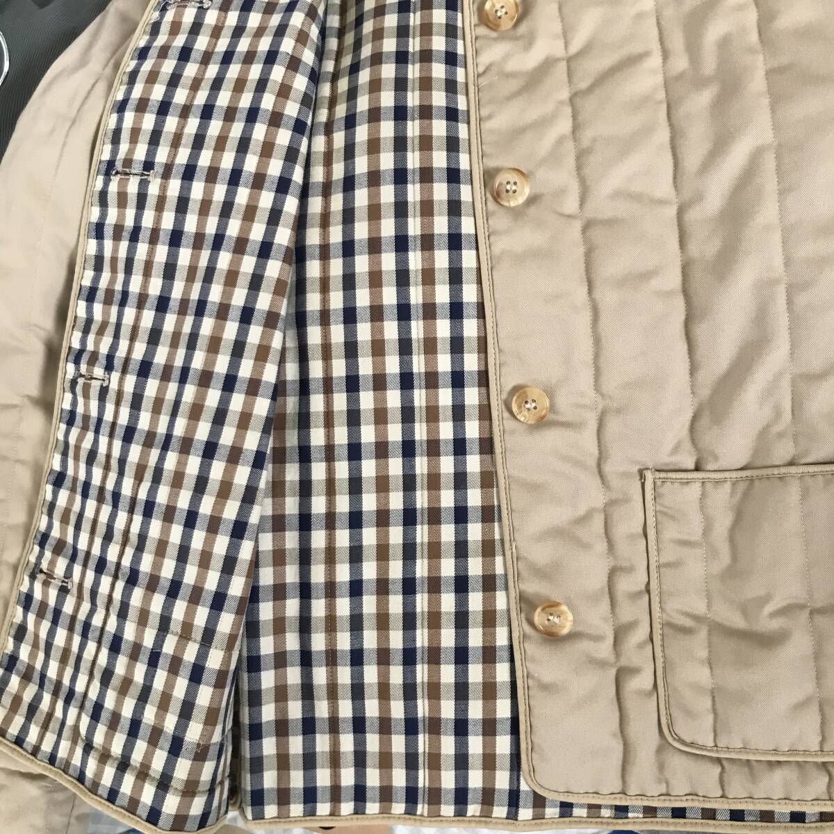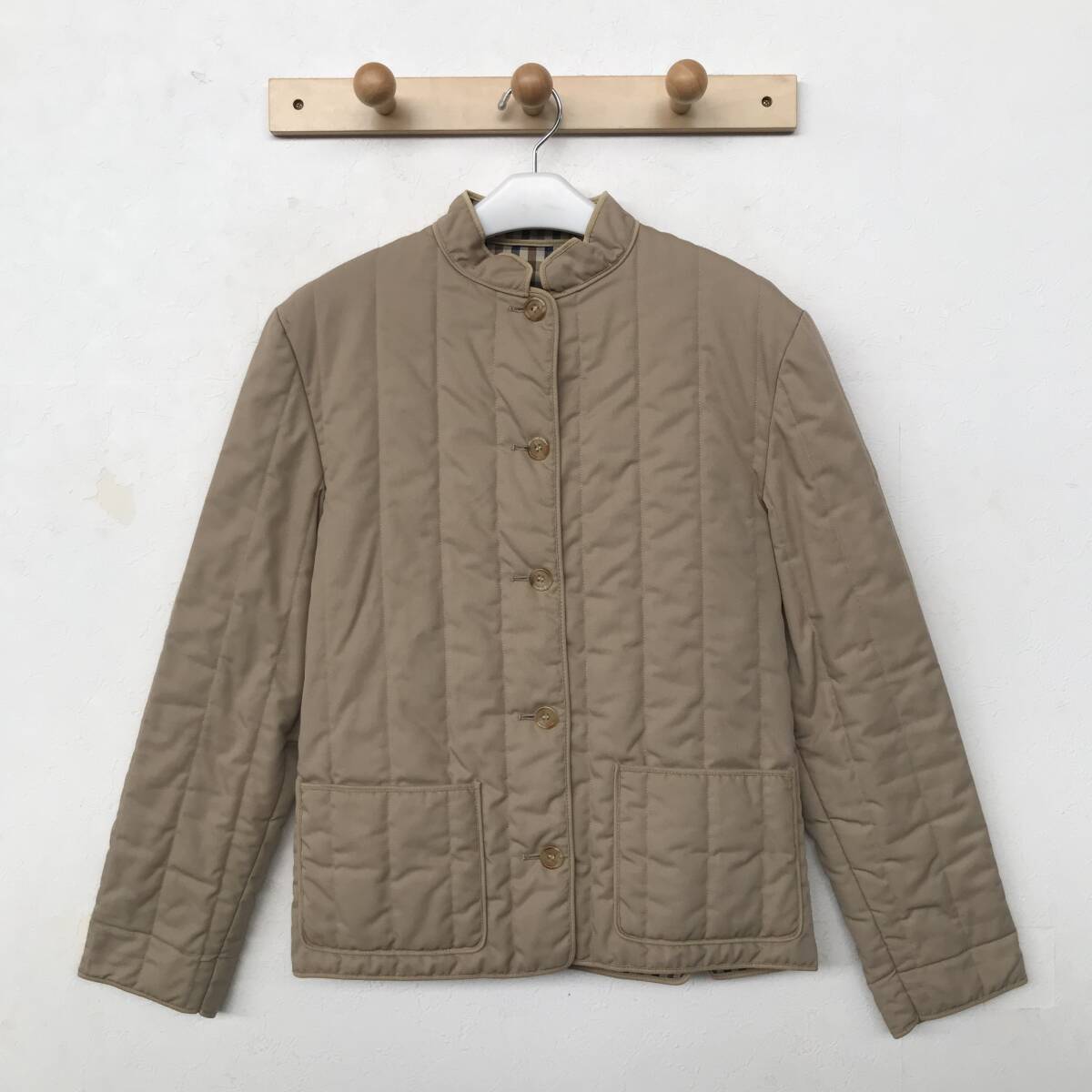 英国製 Aquascutum アクアスキュータム レディース 中綿ノーカラーコート 美品 size L BEJ0702