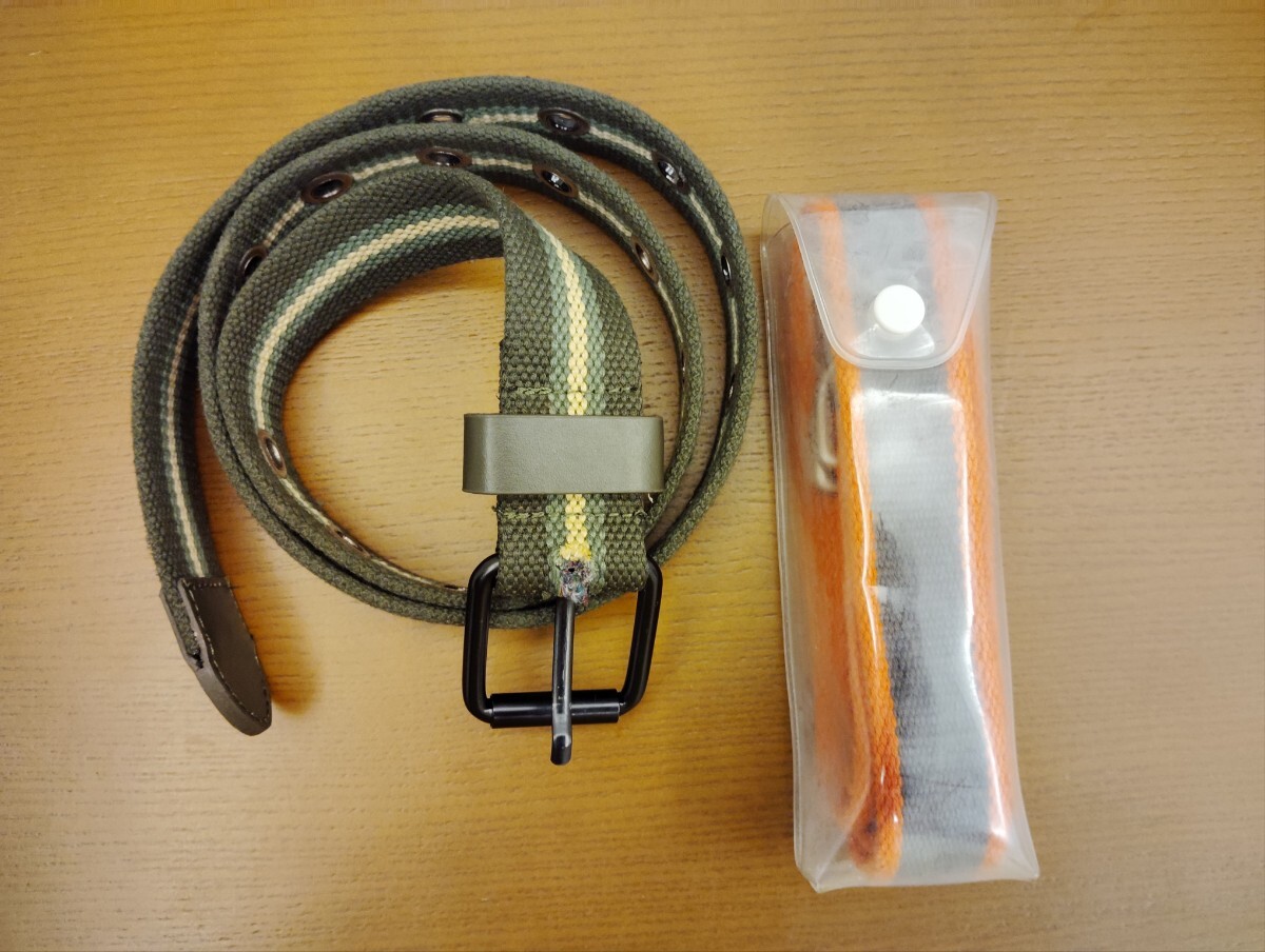 ・カラー:黄色と緑のラインが入っている1本はユニクロ製品です。もう1本、長さ120cm)はグリーン色に灰色ラインが入っています。ファッションスタイルベルトで、自分にフィットするサイズに調整可能。