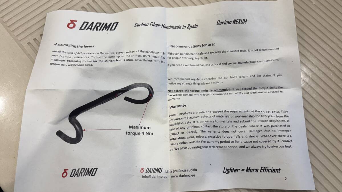 【新品未使用】DARIMO NEXUM 超軽量ステム一体型ハンドルバー200g切り!!です!写真の通りハンドル幅380mm、ステム長100m、ステム角-6°となっております。特筆すべきはその重量でして、実測値で193gと超軽量となっております!また、ハンドル幅380mmもポイントでして、軽量性もさることながら、ハンドル幅が狭いことで両腕間隔が狭まり、空気抵抗の低減にも繋がるかと思います。もちろん開封しただけの新品未使用品となります。送料は一律2000円にてお願いします。NCNRにてお願いします。